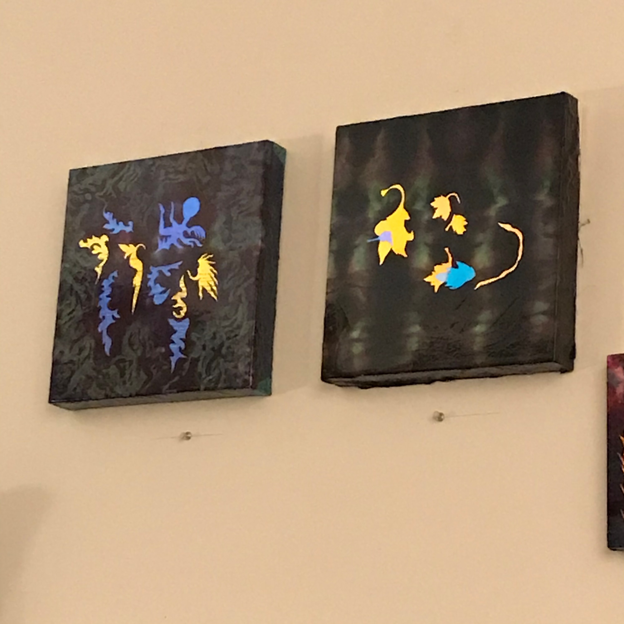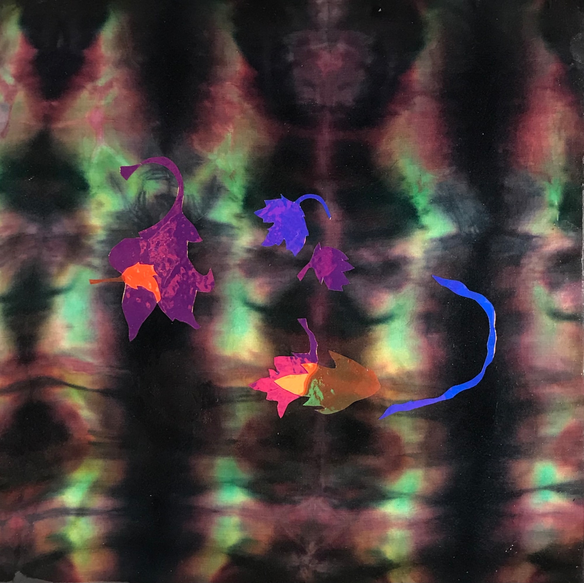 Contemporary fine artist concentrating in painting with protein dye on silk and mixed media.