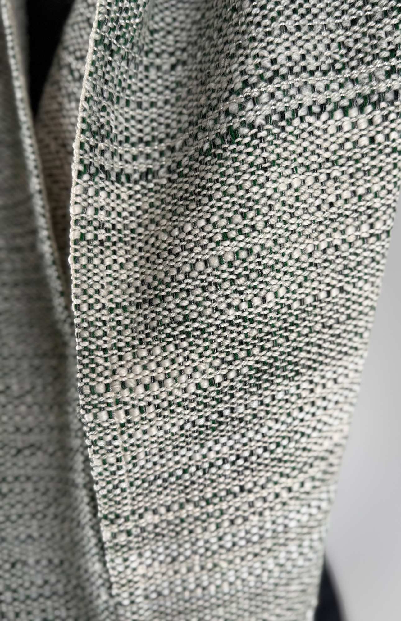 Cowl made from cotton, wool, silk, tencel, alpaca and bamboo. White warp and green weft. Double, plain weave.