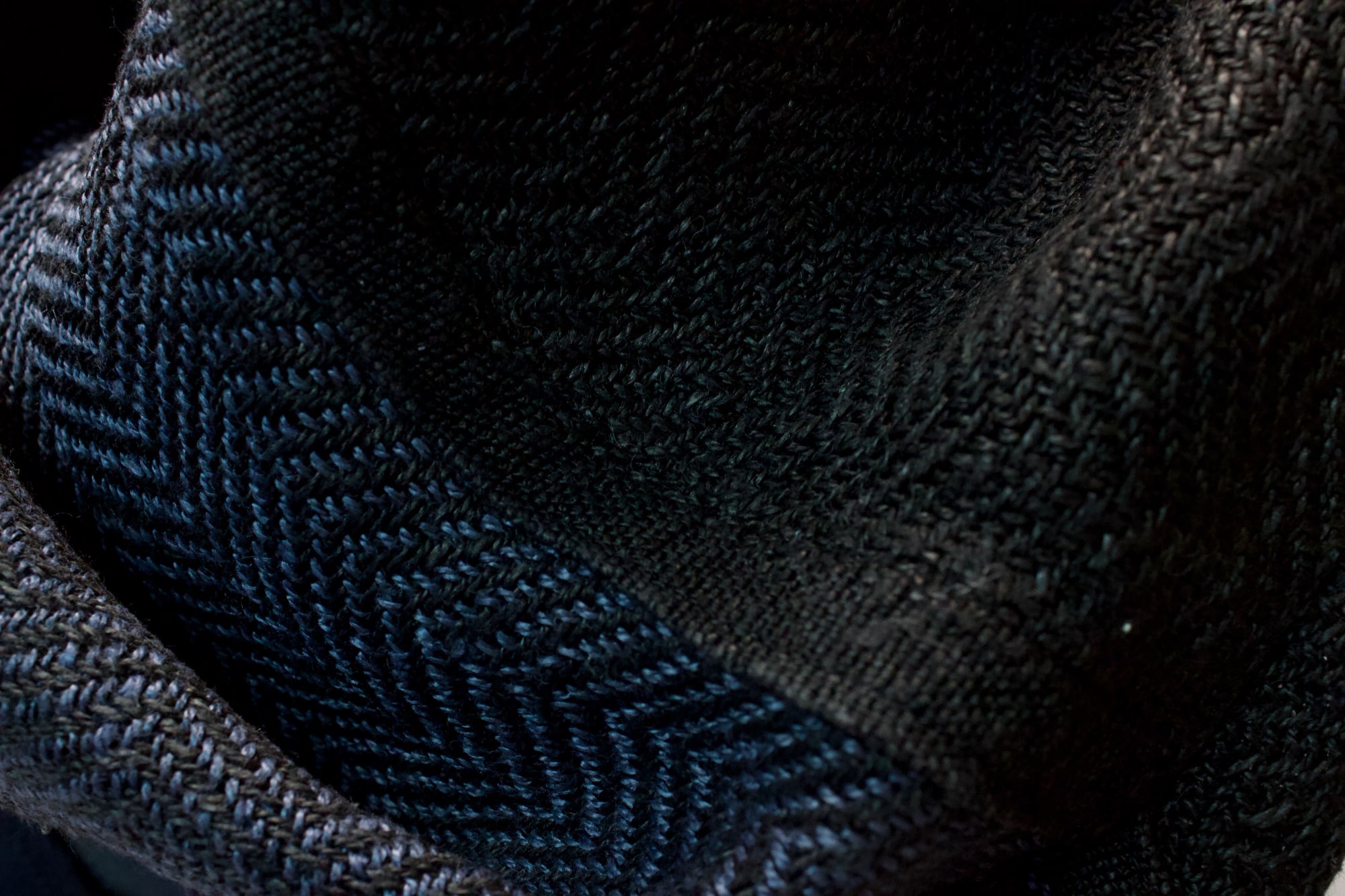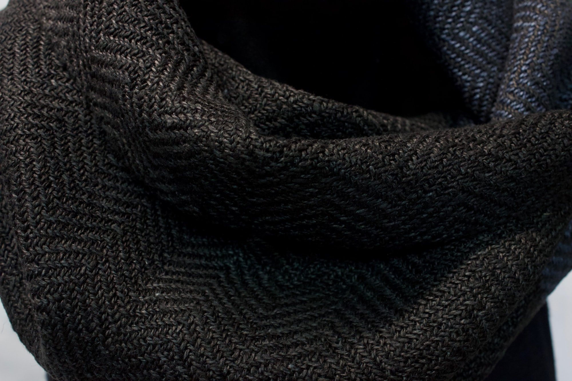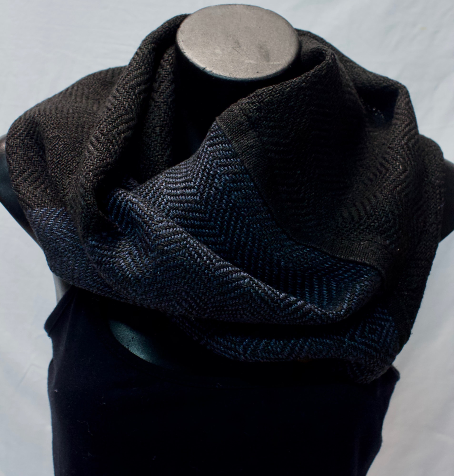 Cowl made from black and blue linen.