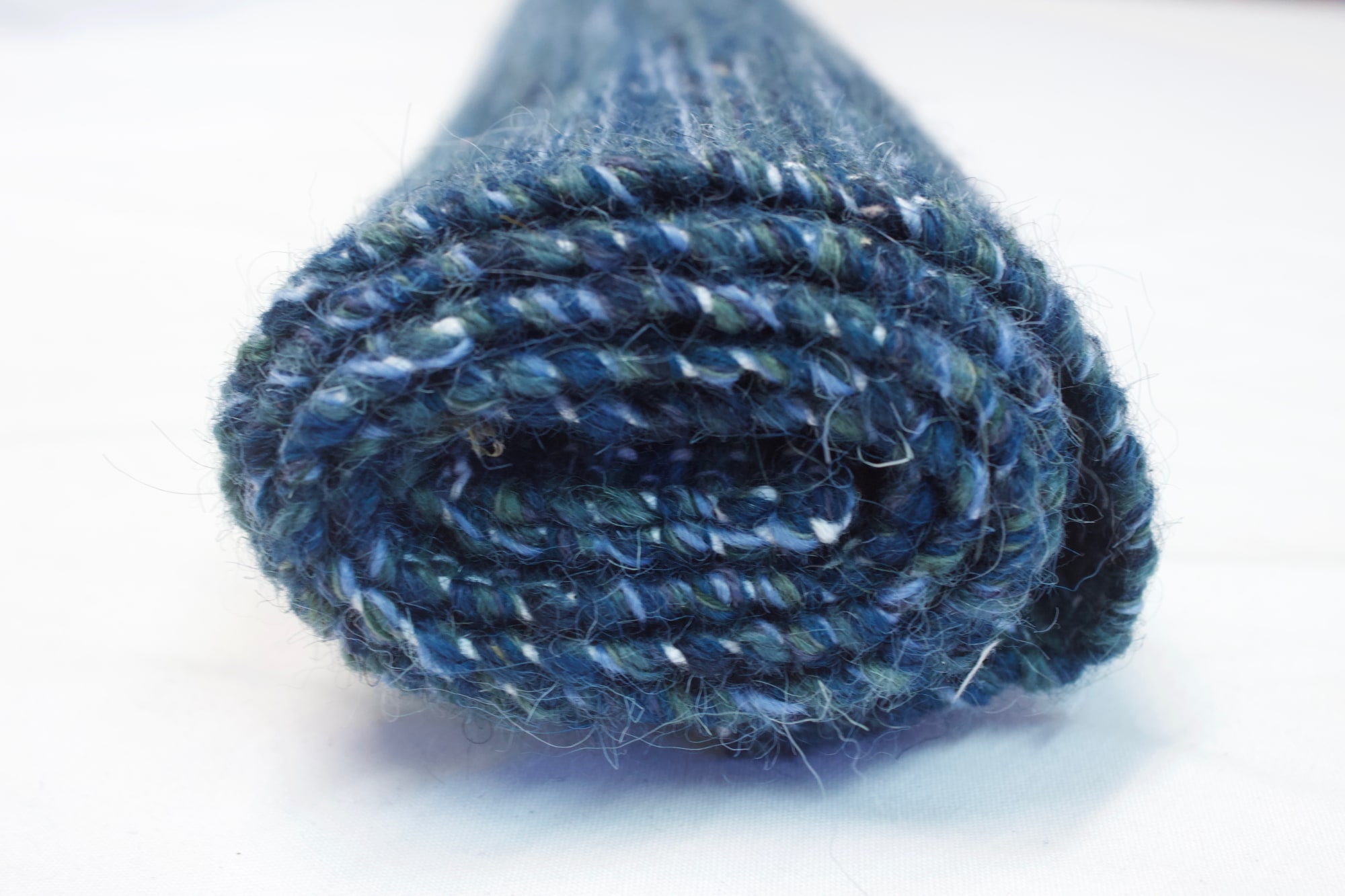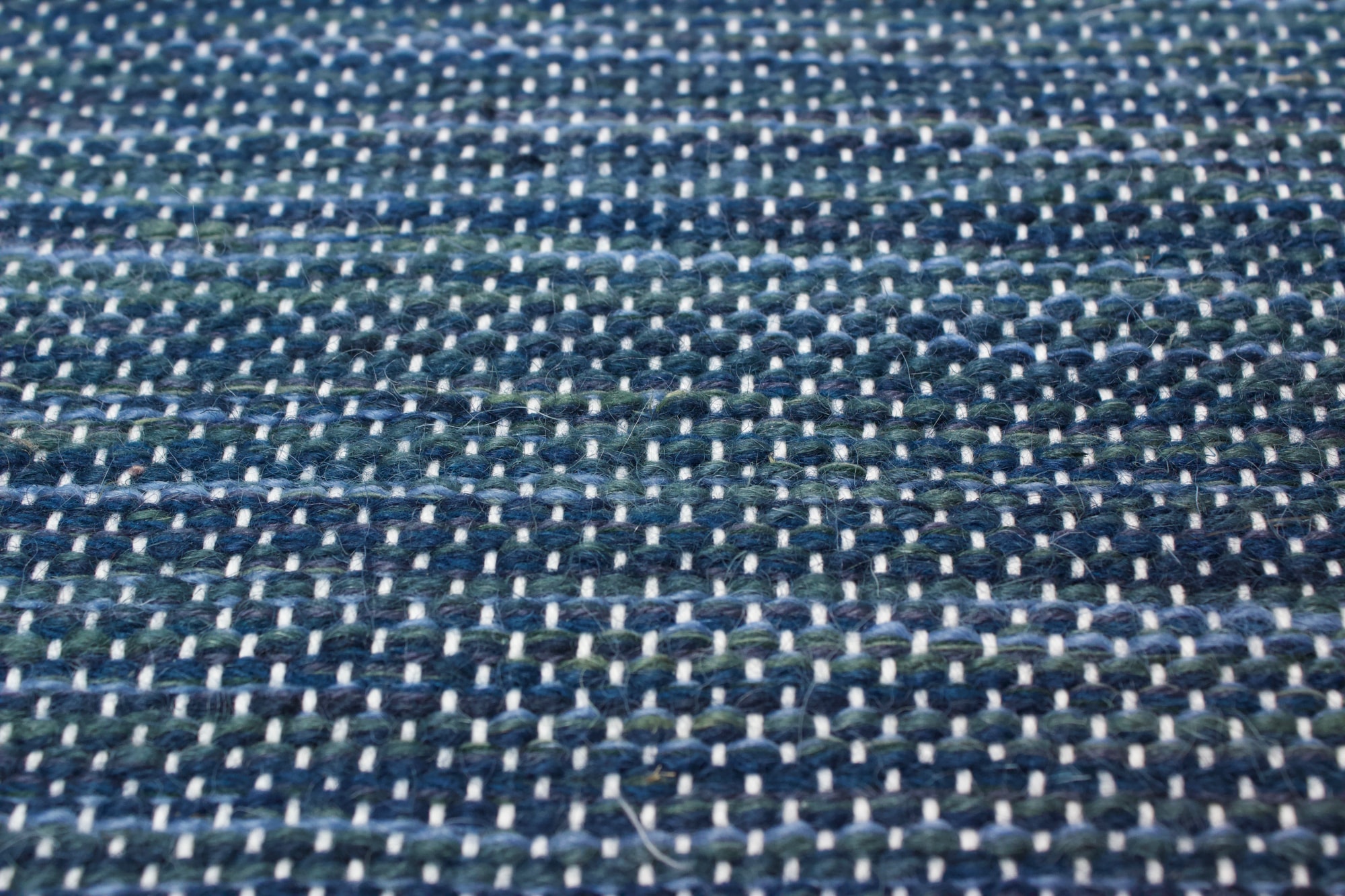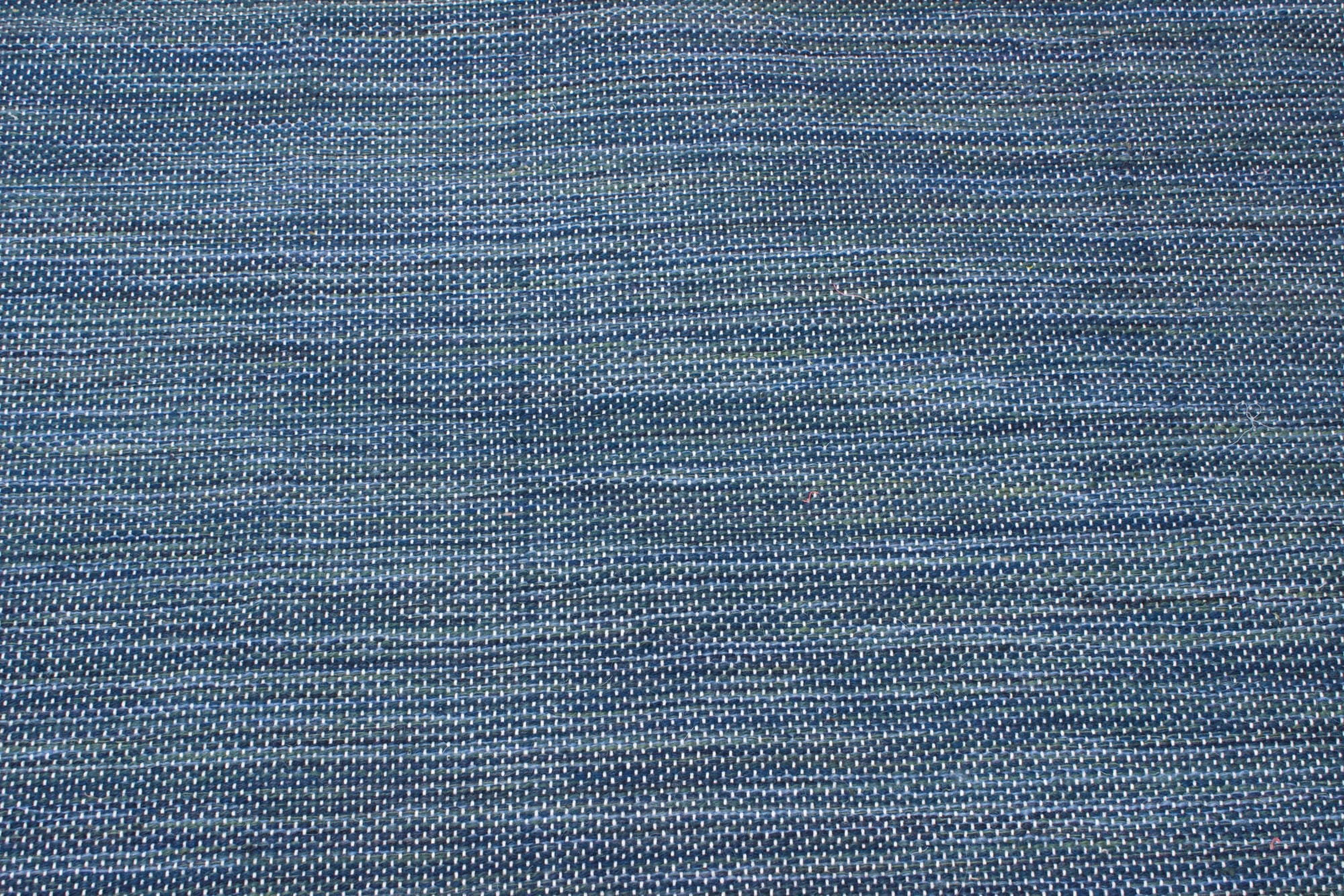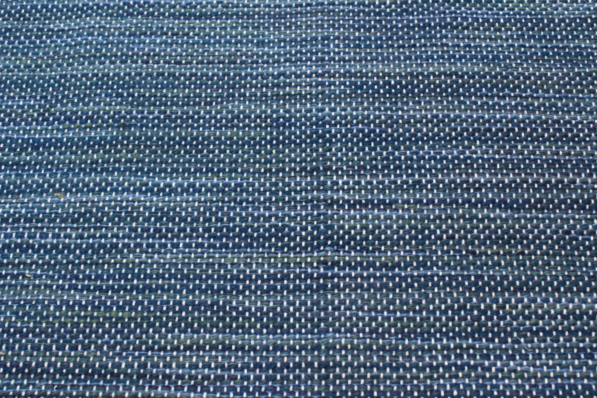 Floor rug made from natural cotton and blue rug yarns.