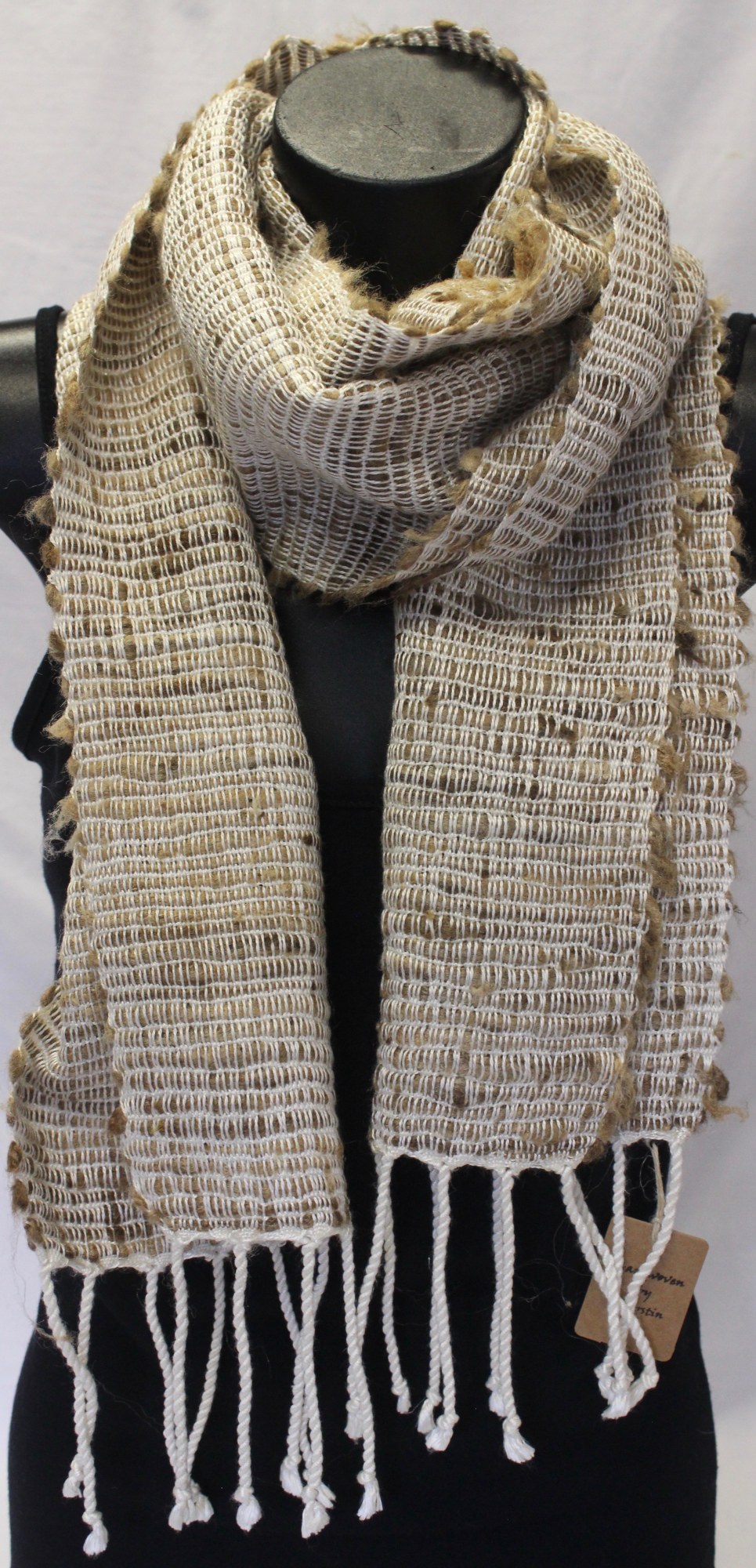 Scarf made from white mulberry and raw tussah silk.