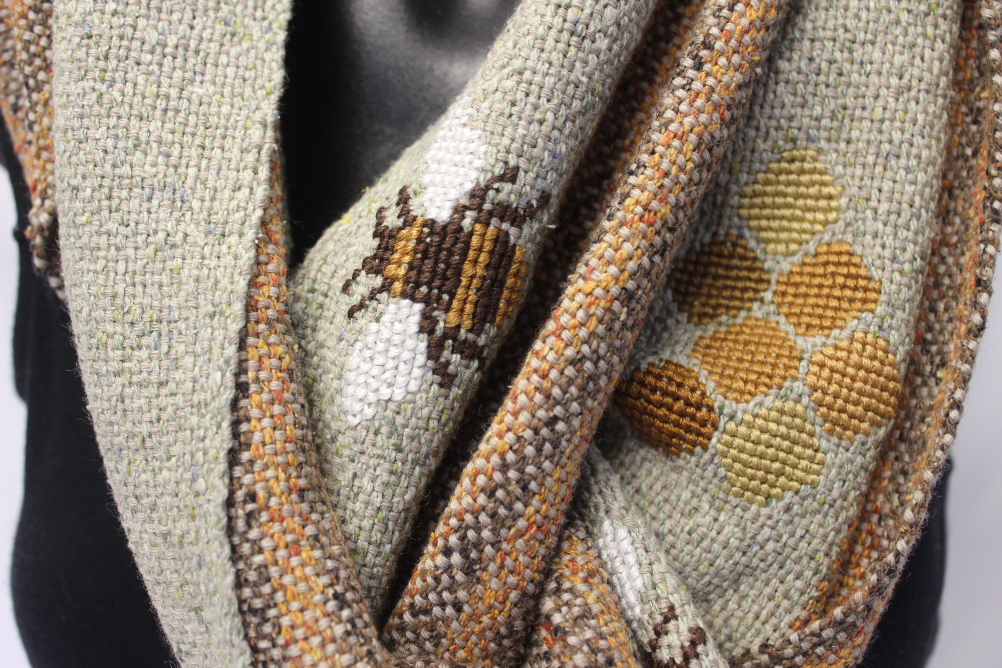 Scarf made from noil silk warp and merino weft.