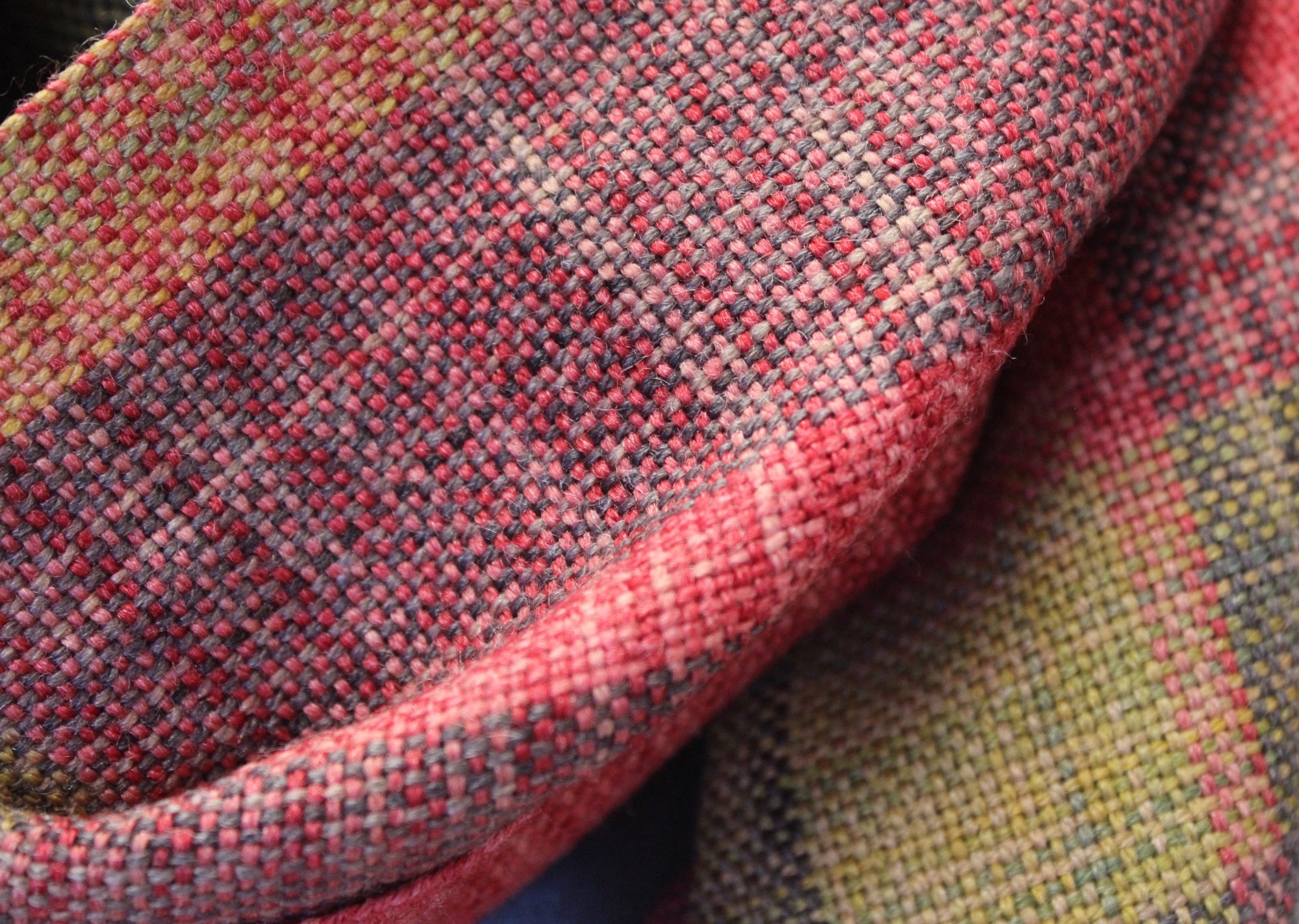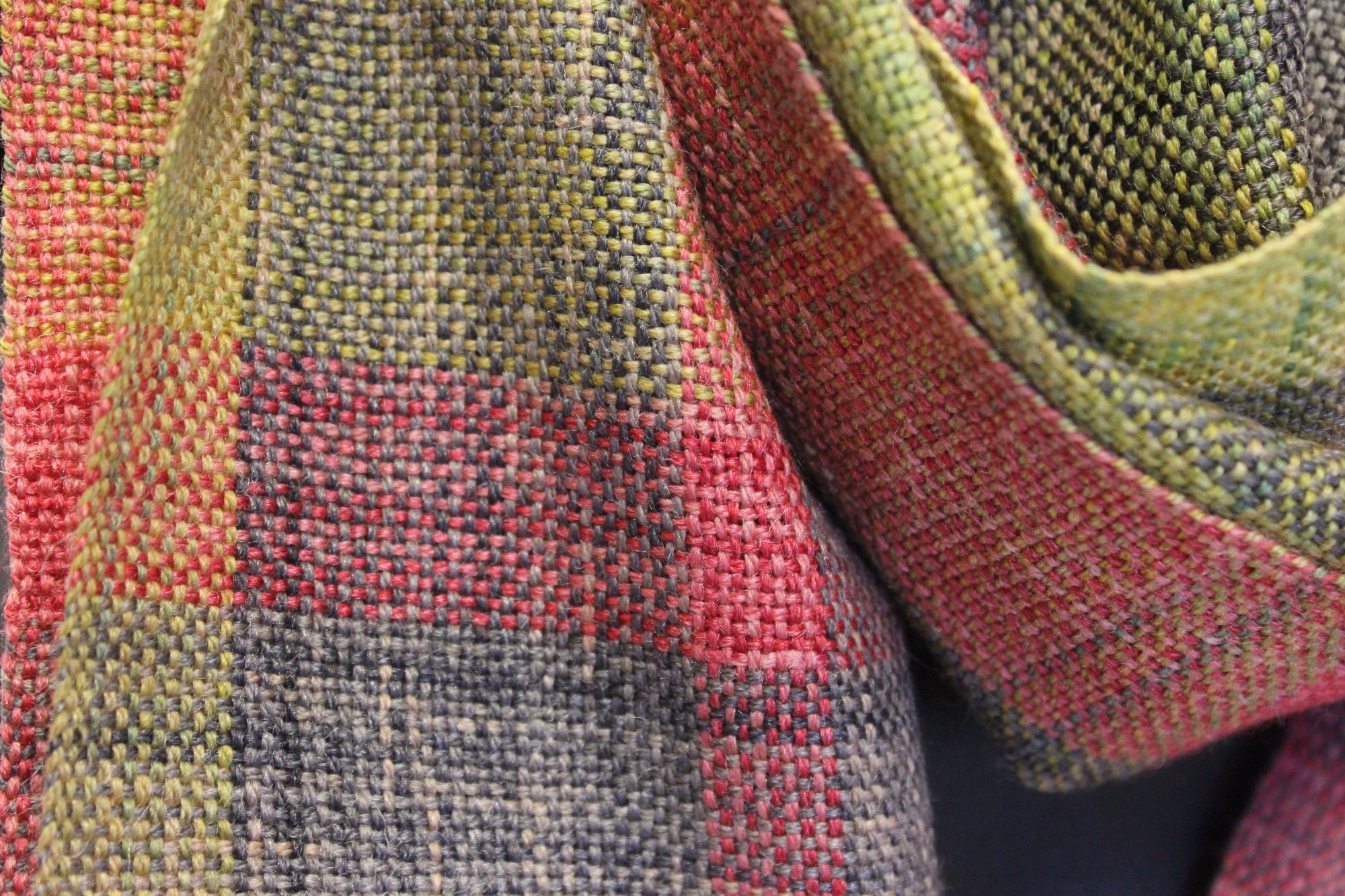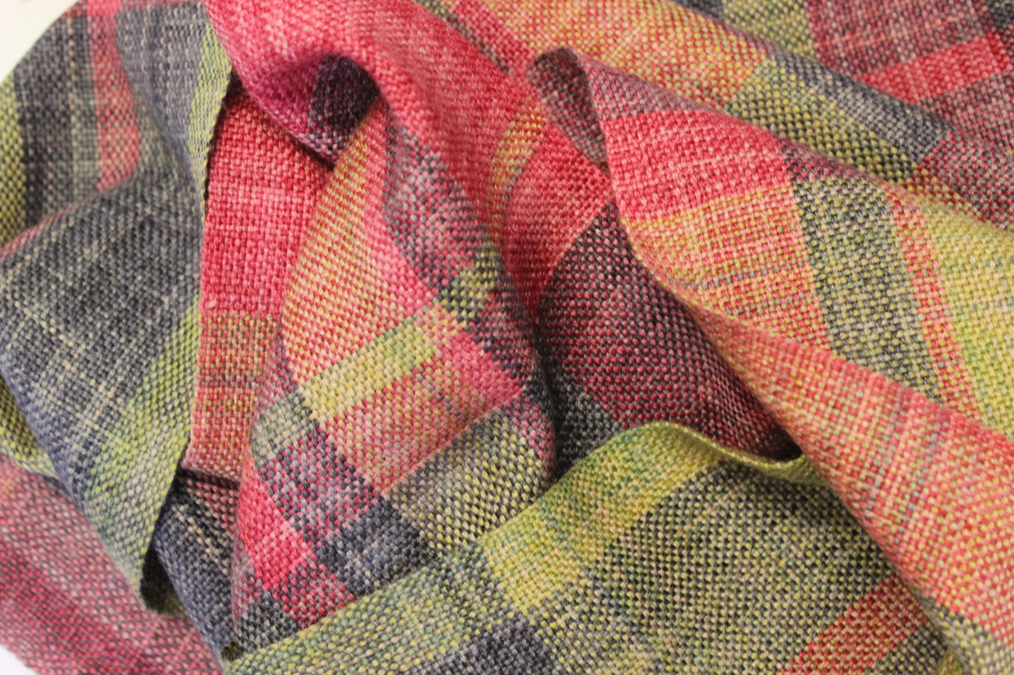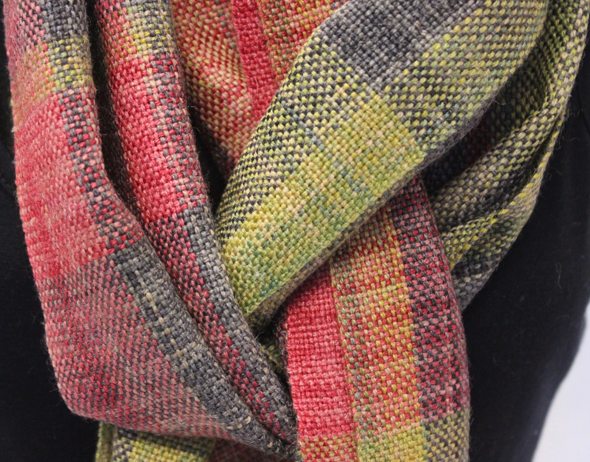Scarf made from hand dyed wool/silk in grey, pink and lime. Plain weave. Light and soft. Dyed by Dyeing4ewe.