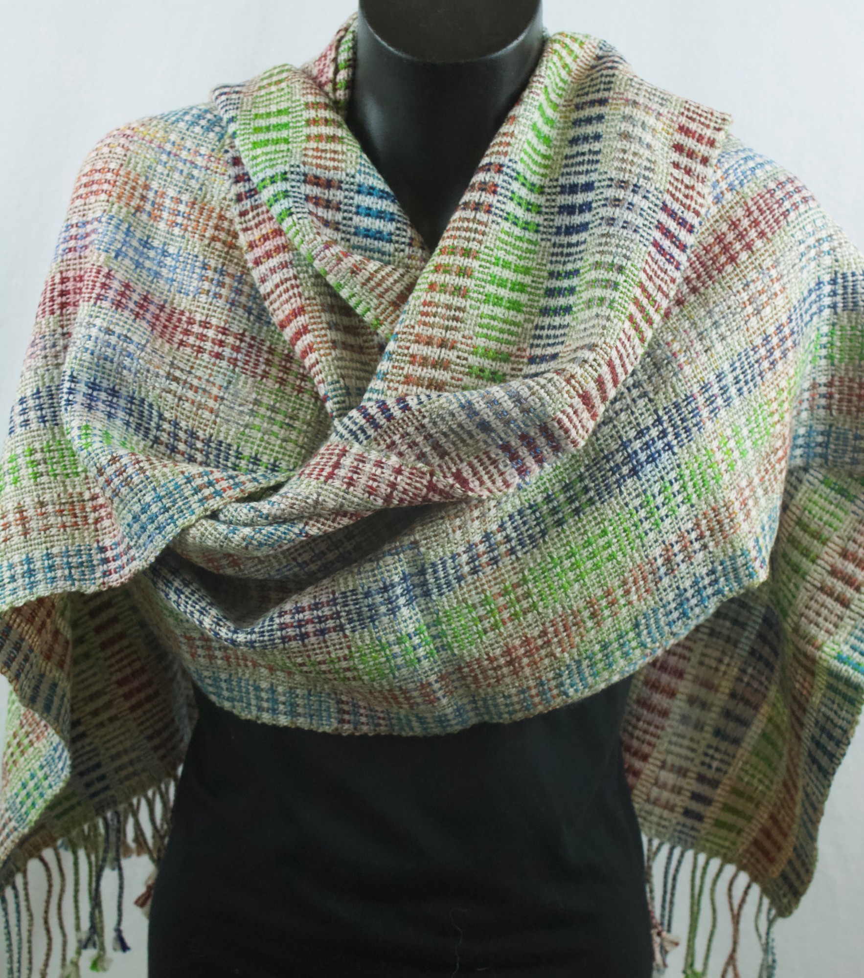 Shawl made from multicoloured wool and silk.