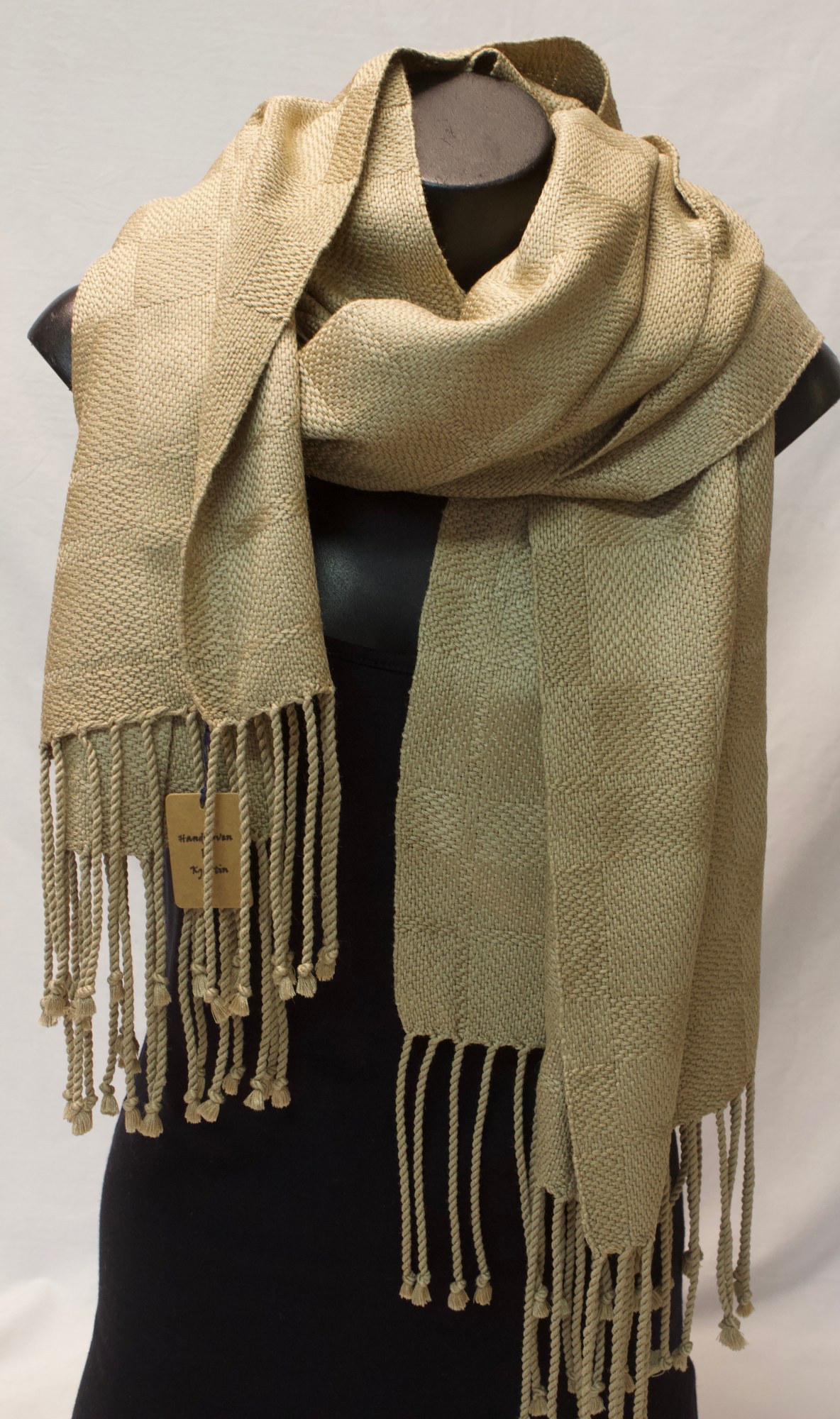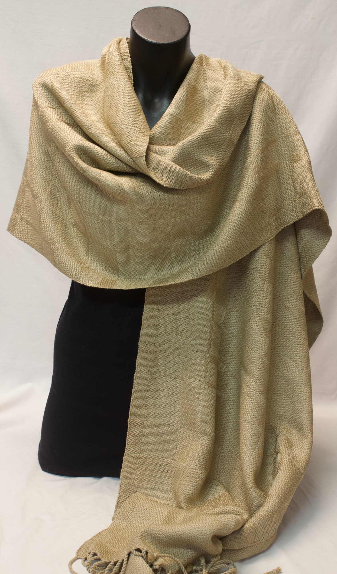 Shawl made from camel coloured silk.