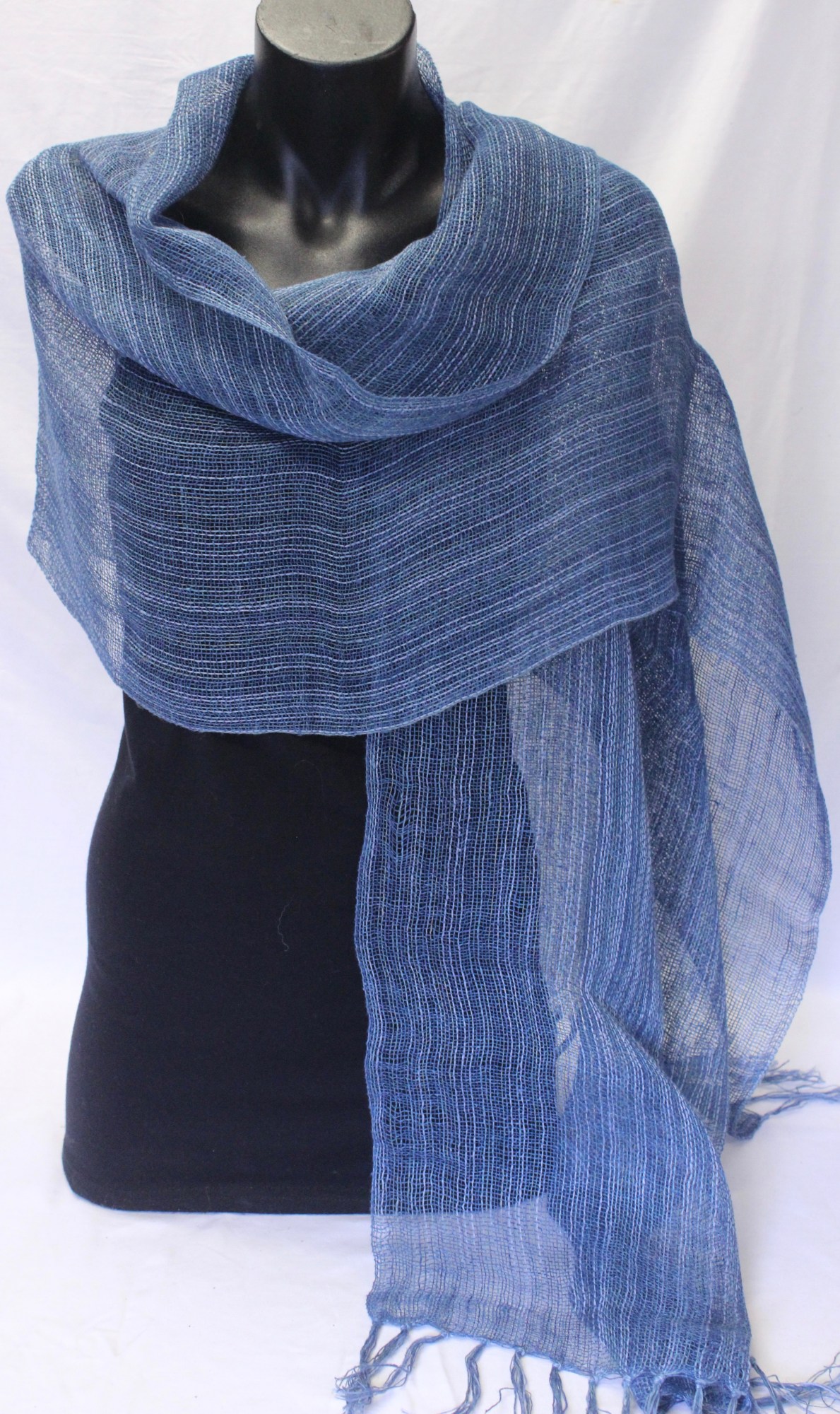 Shawl made from blue linen.