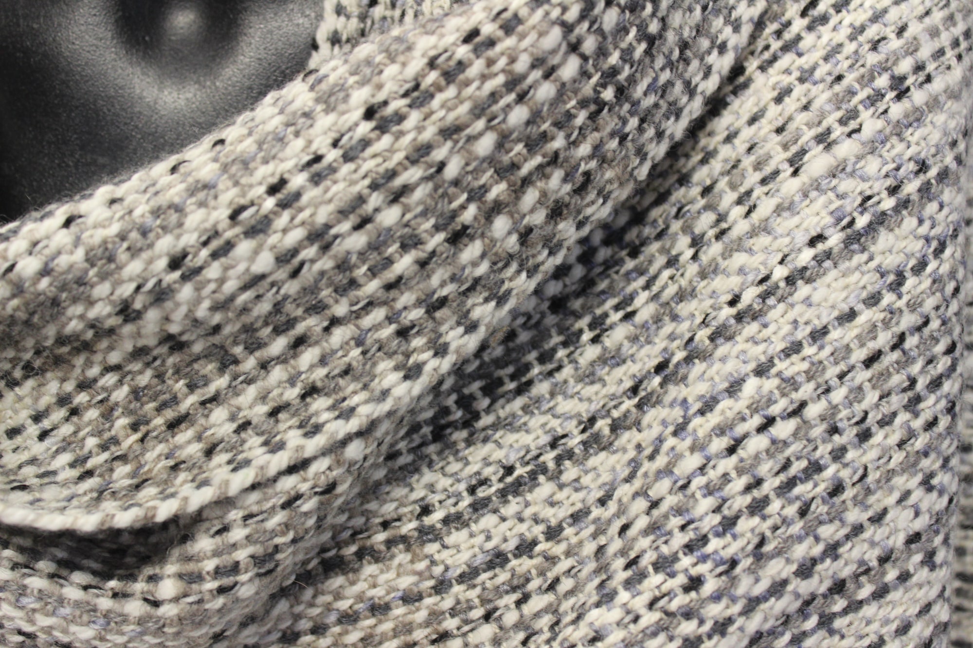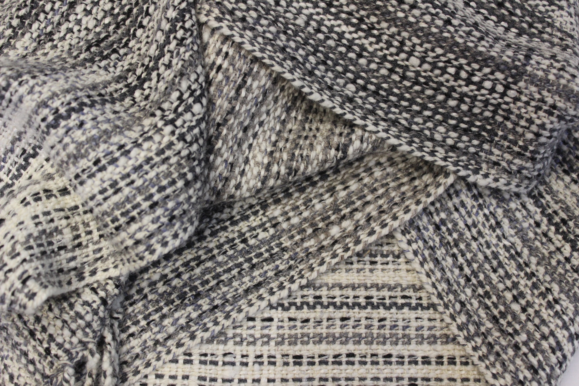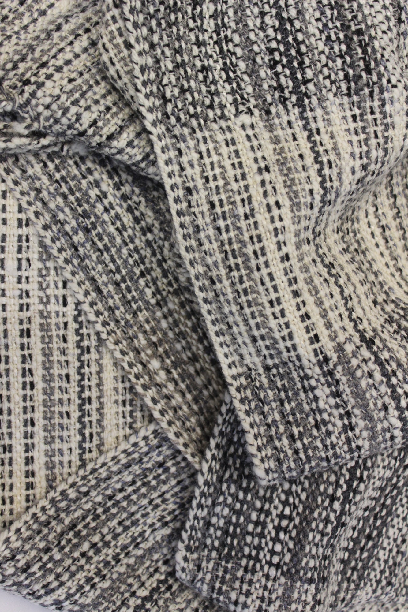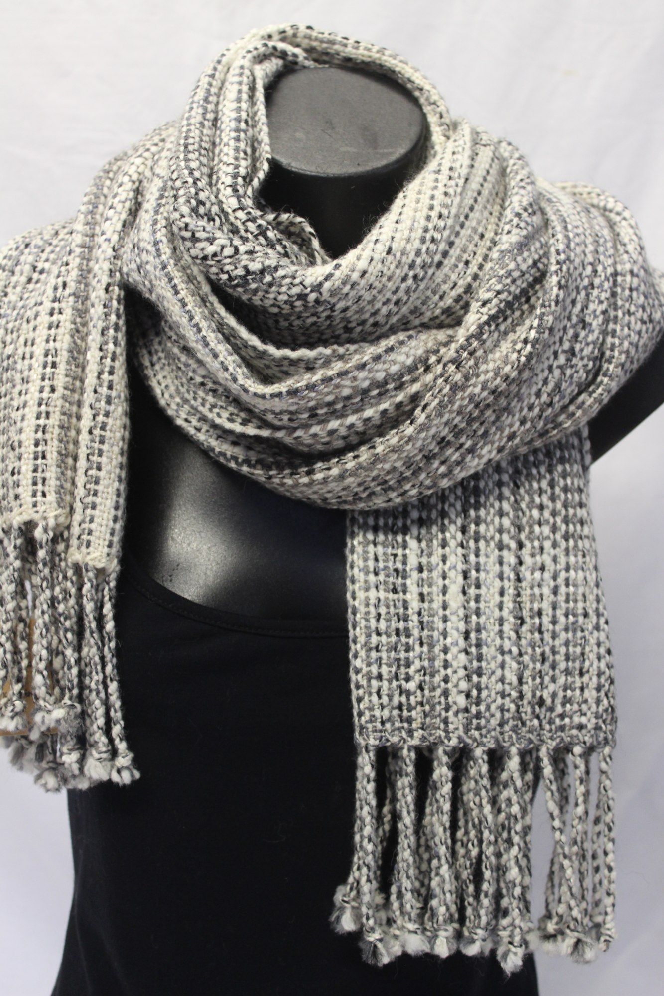 Shawl made from white, grey and black wool, silk and alpaca, some hand spun.