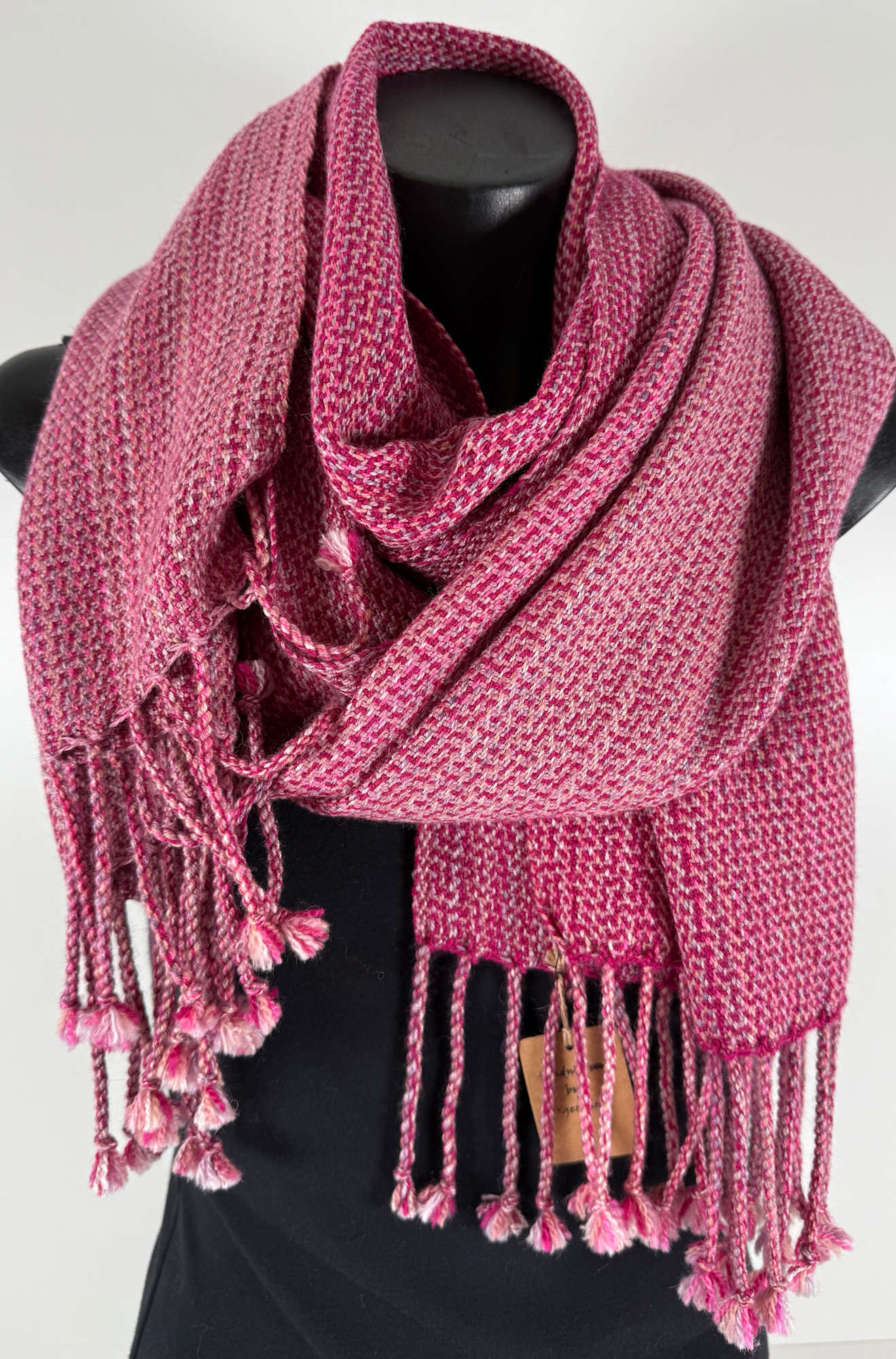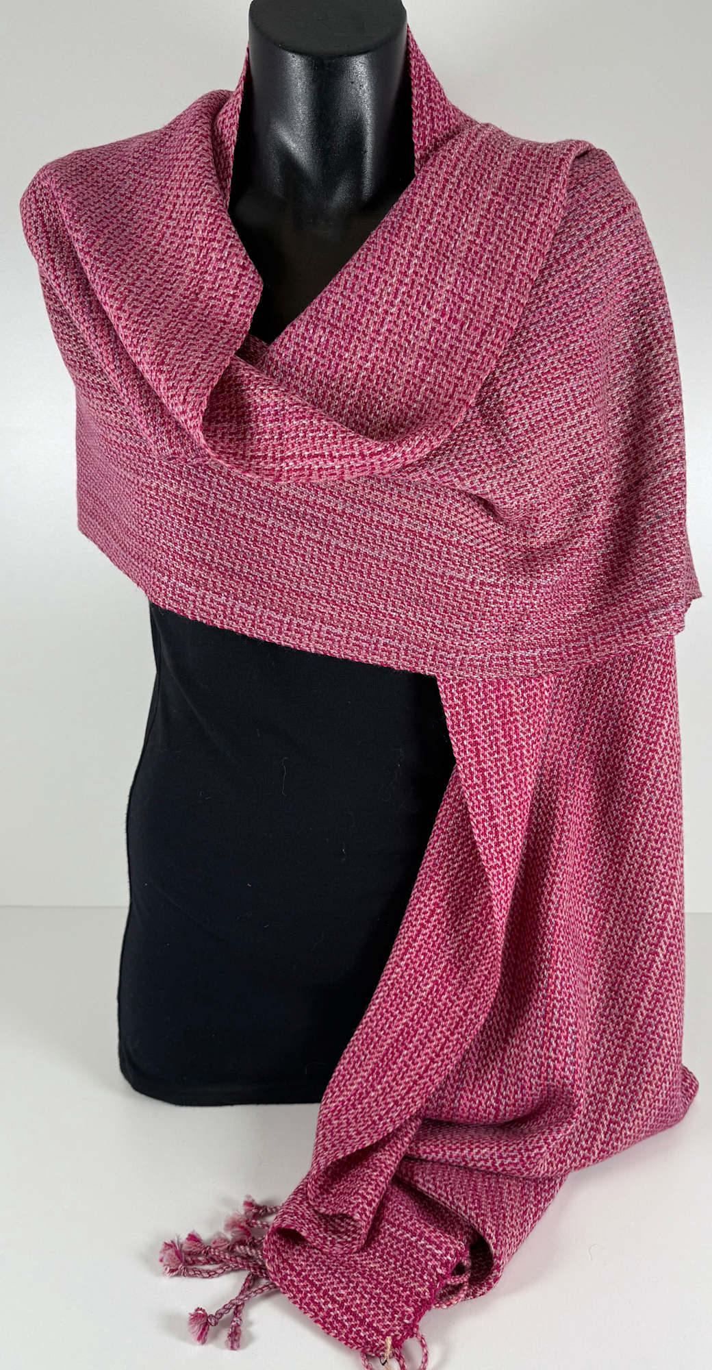 Shawl made from pink wool and silk.
