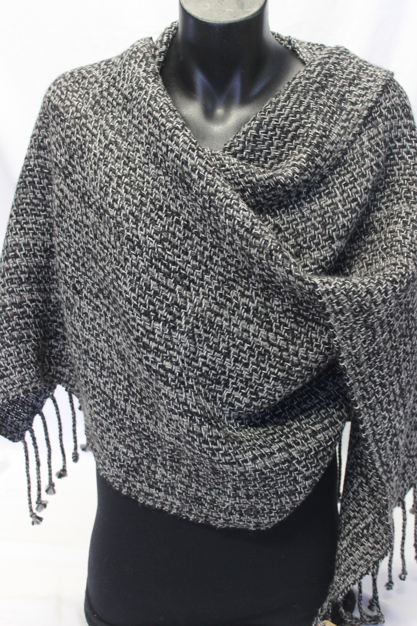 Shawl made from black and grey wool and alpaca.