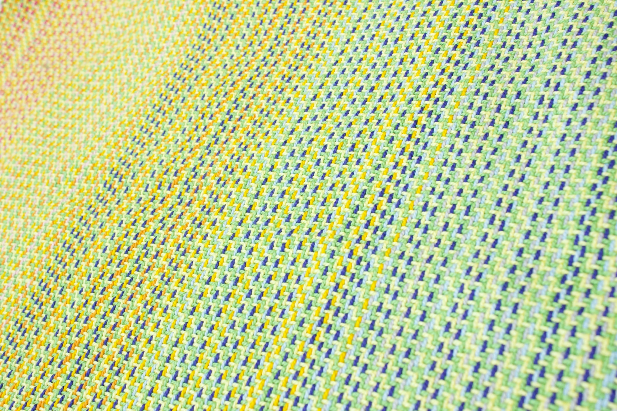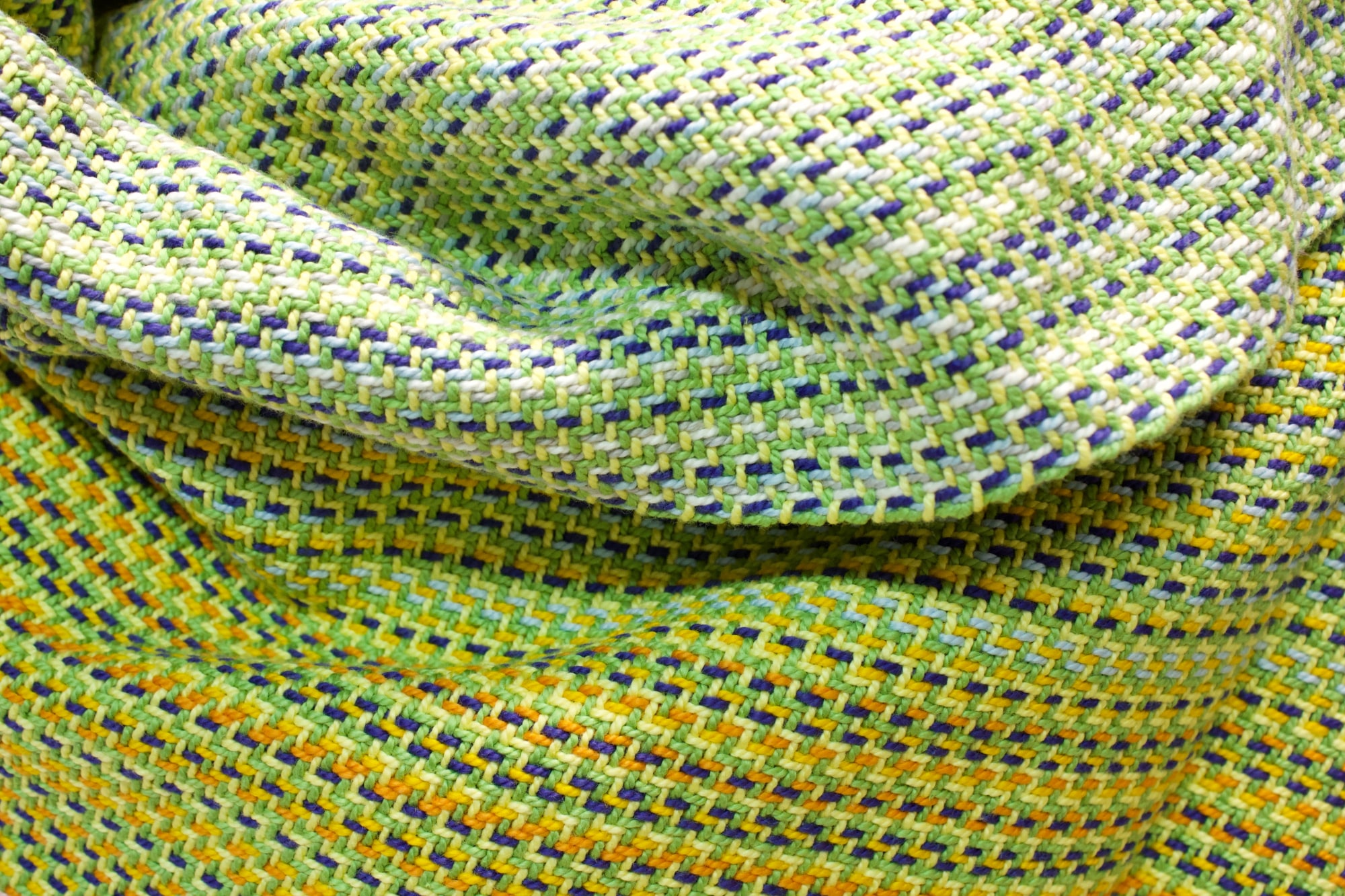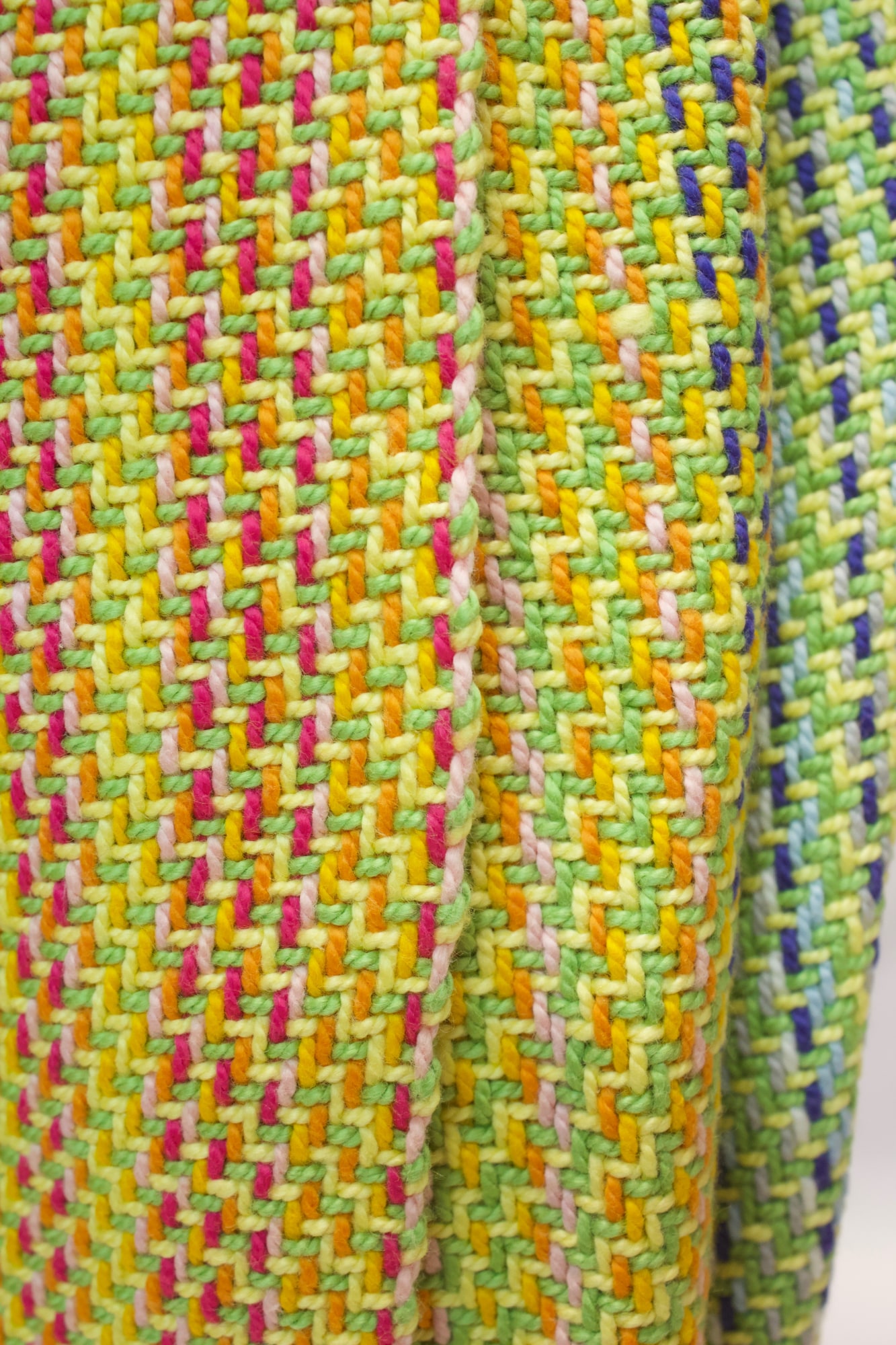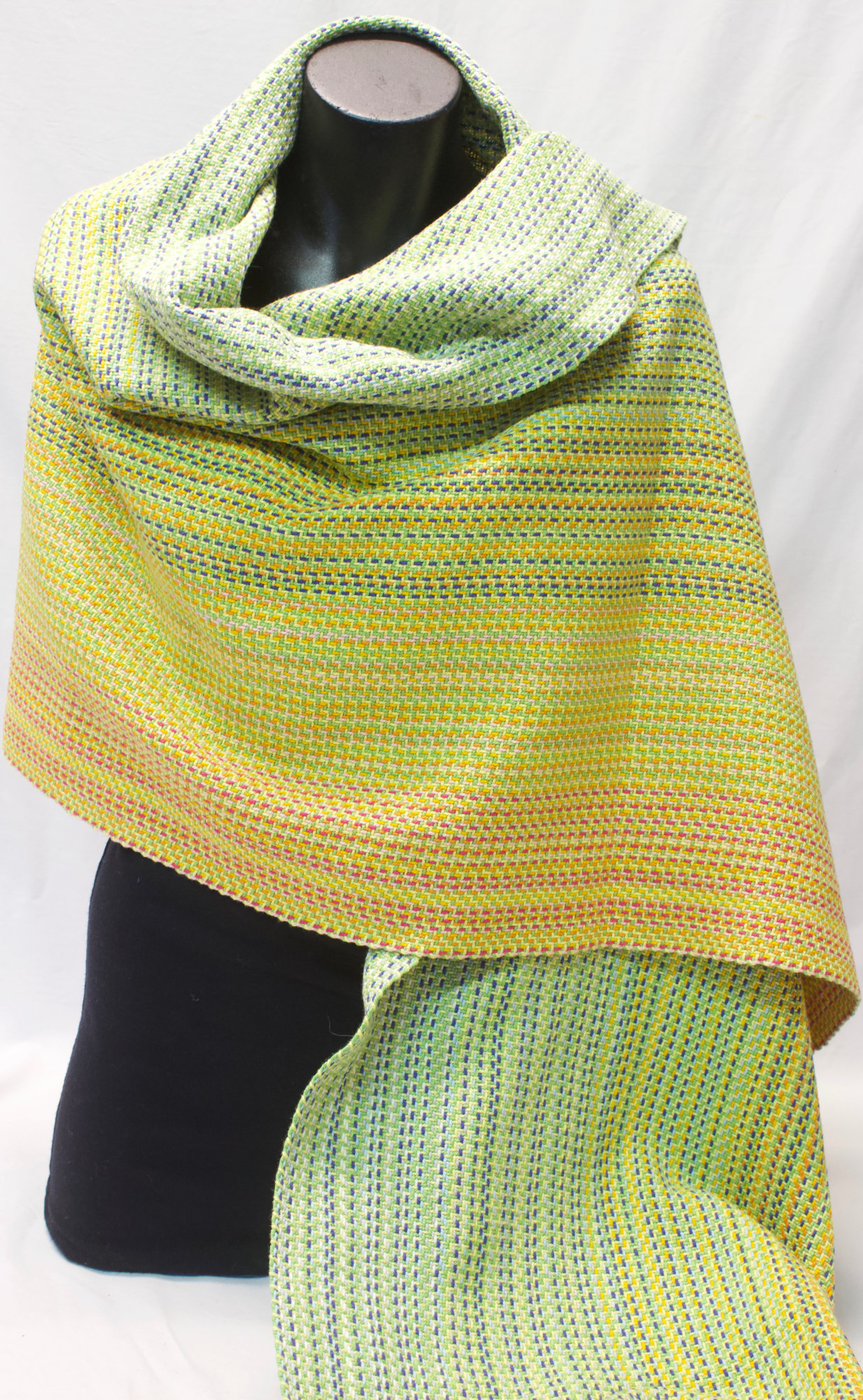 Shawl made from white, yellow, orange, pink, green, grey and blue cotton from Gist.