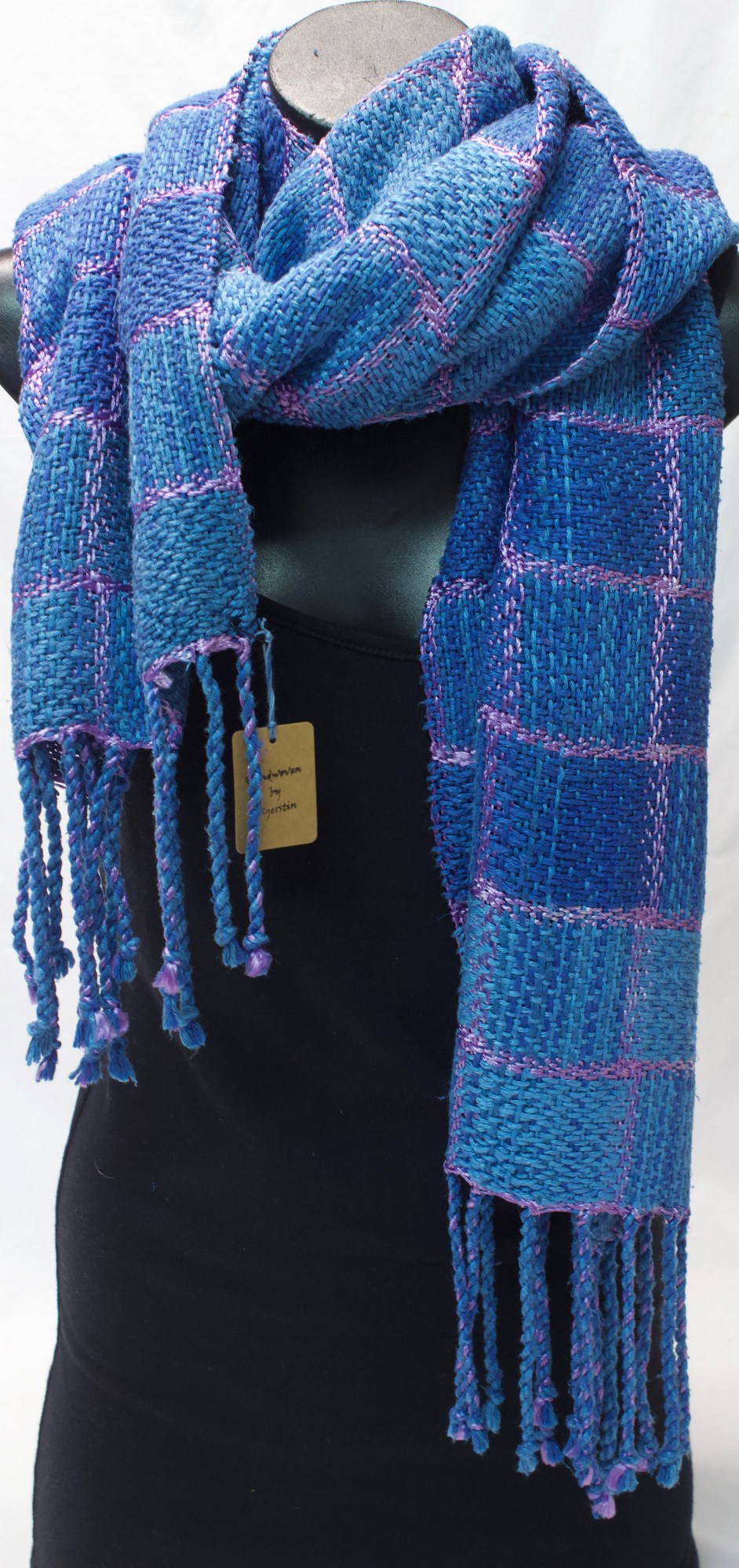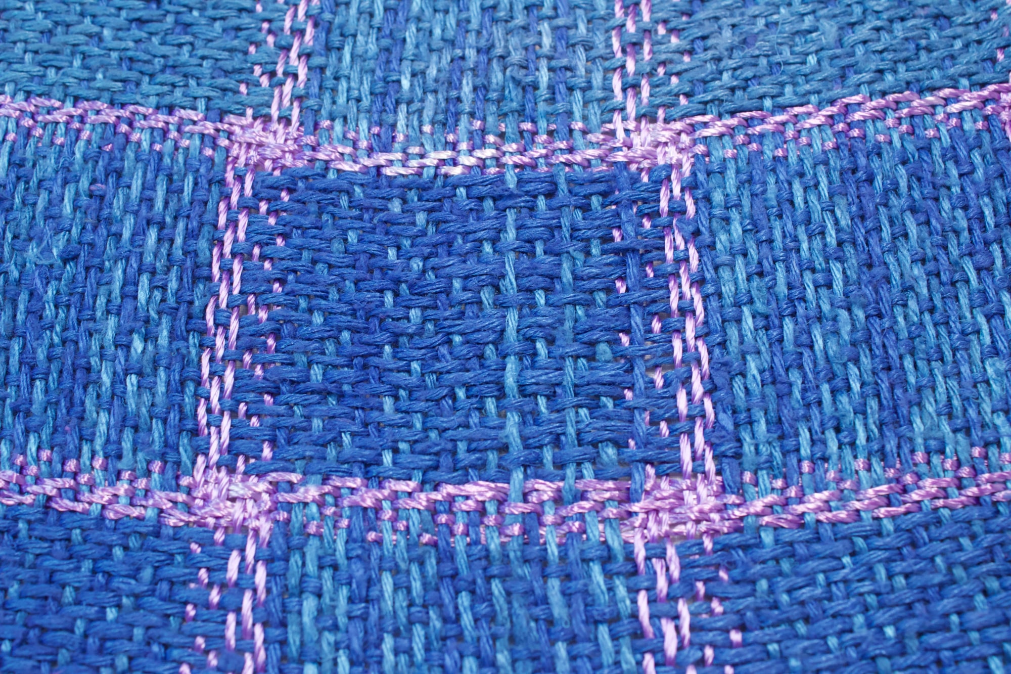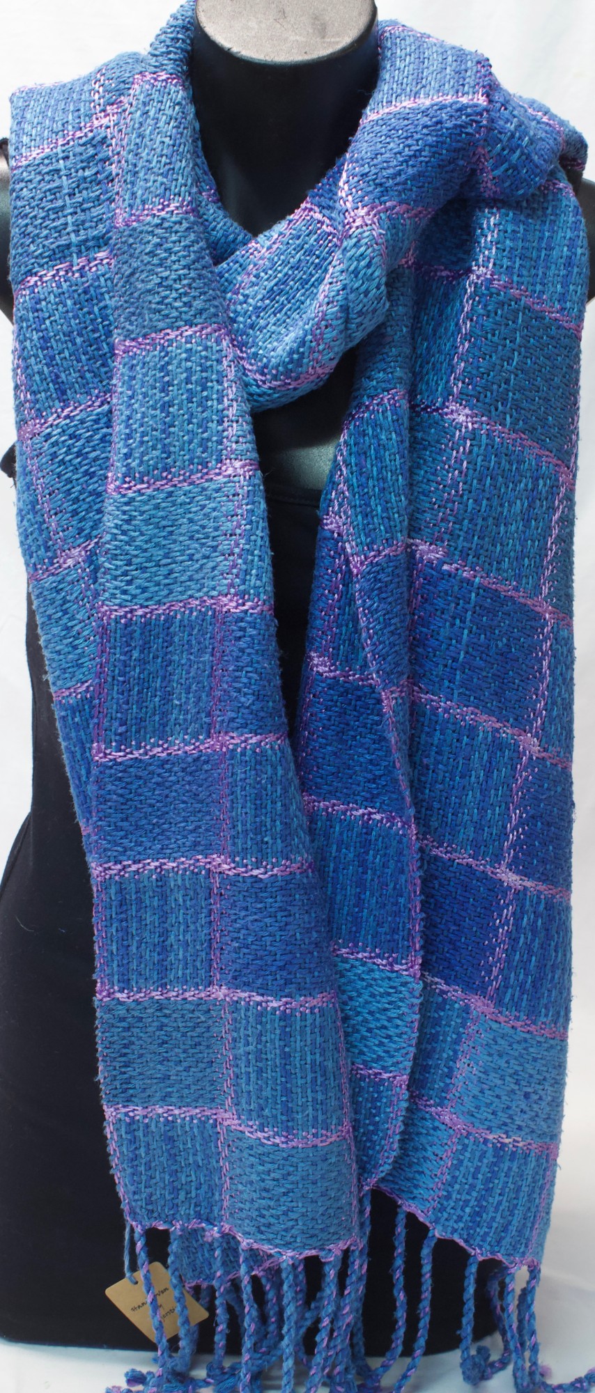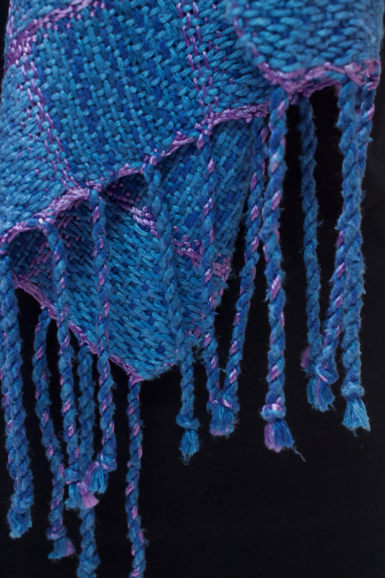 Shawl made from blue throwster silk and pink mulberry silk.