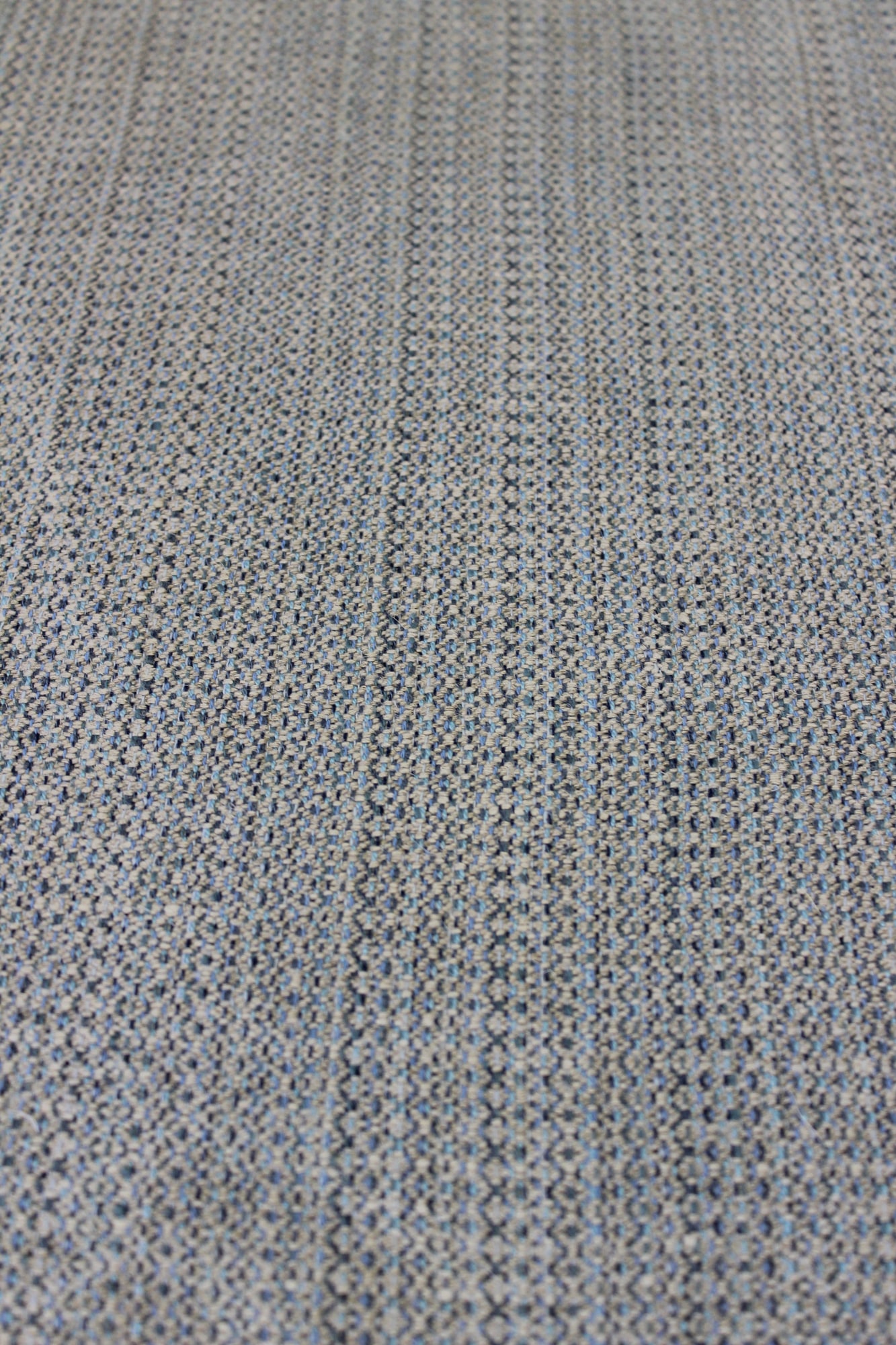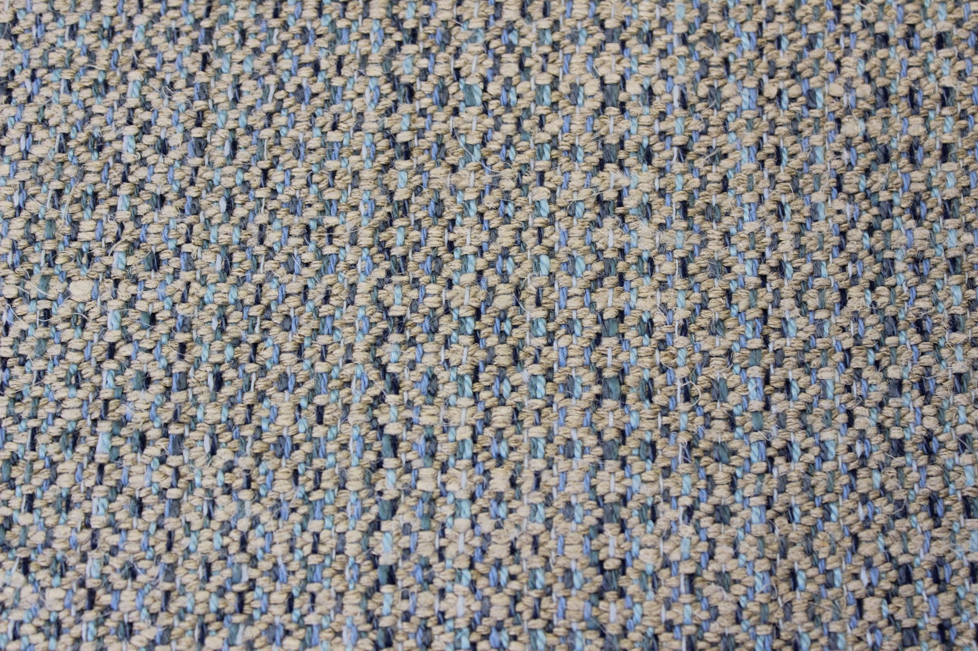 Table runner made from blue cotton and linen warp, with unbleached linen weft. Twill pattern.
