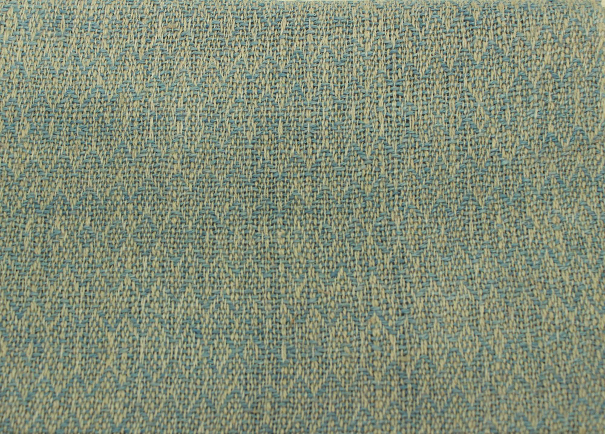 Tea towel made from unbleached linen in the warp and blue linen weft. Asymmetric, advancing twill pattern.