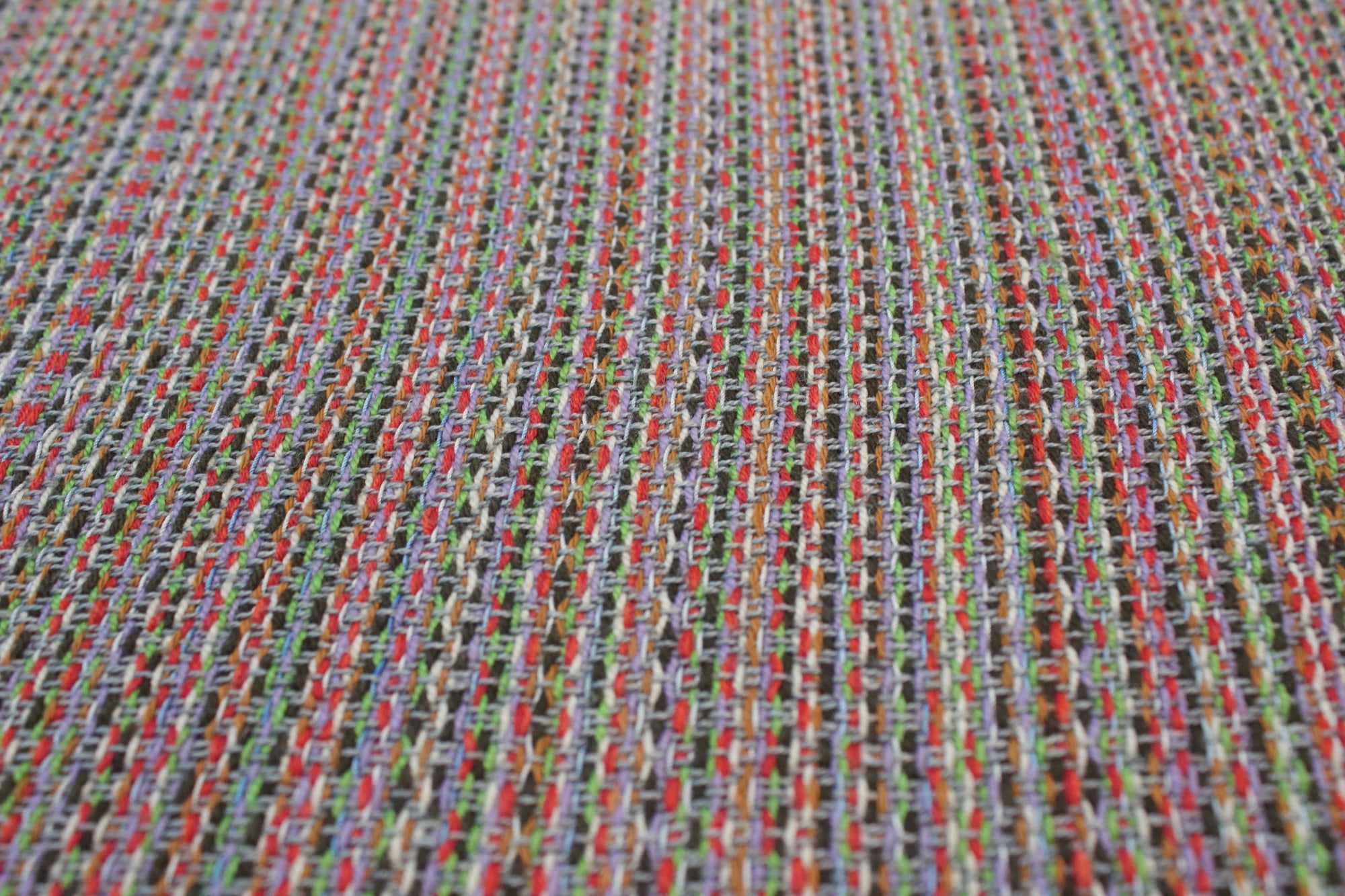 Multicoloured warp and grey weft.