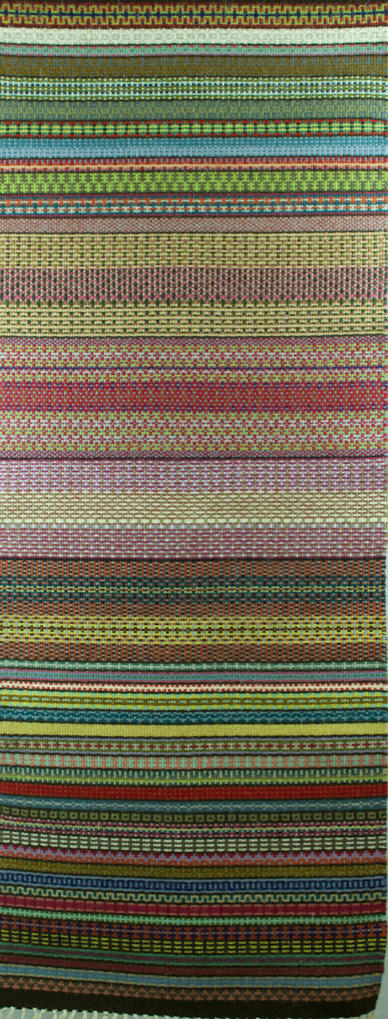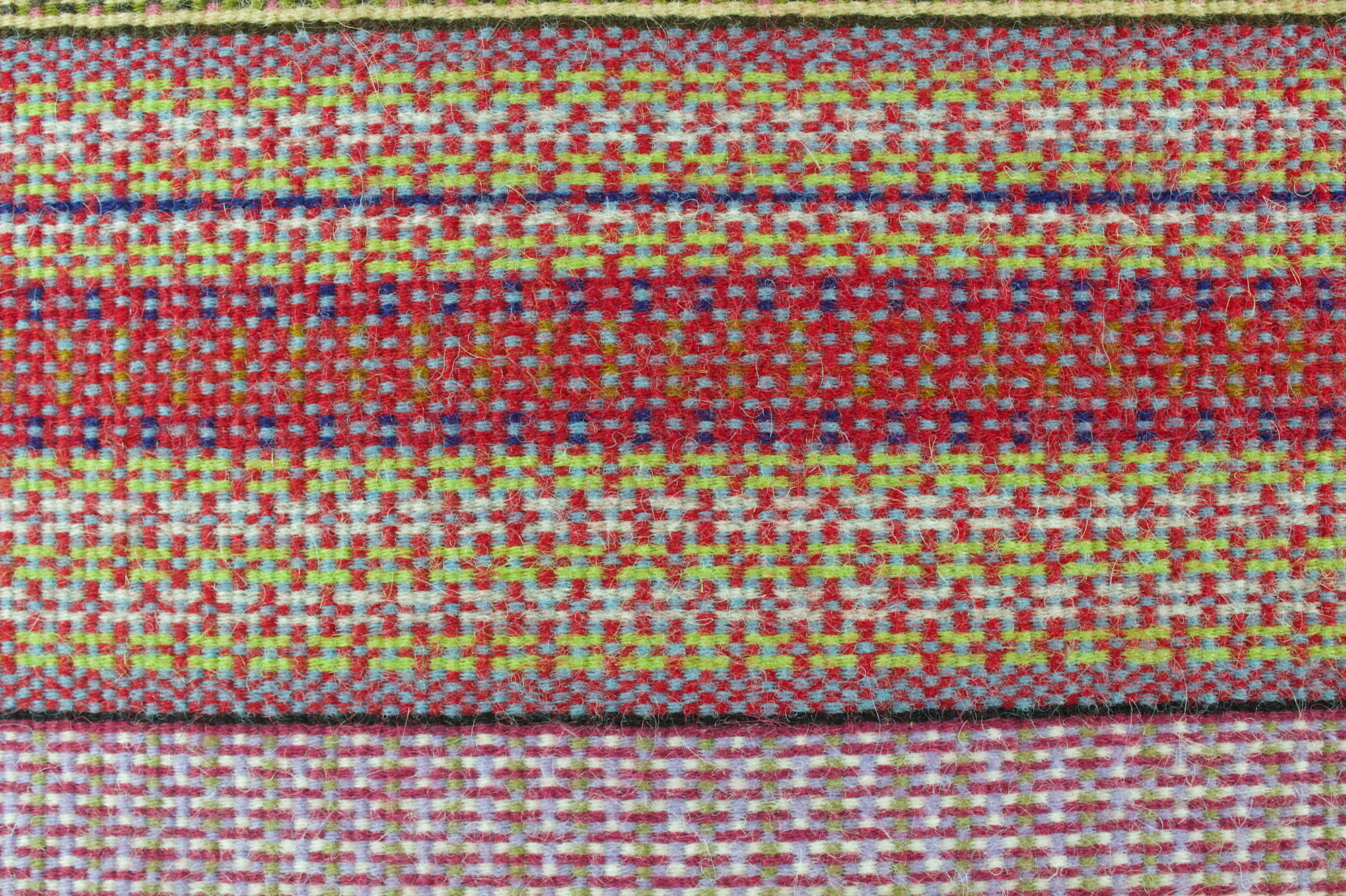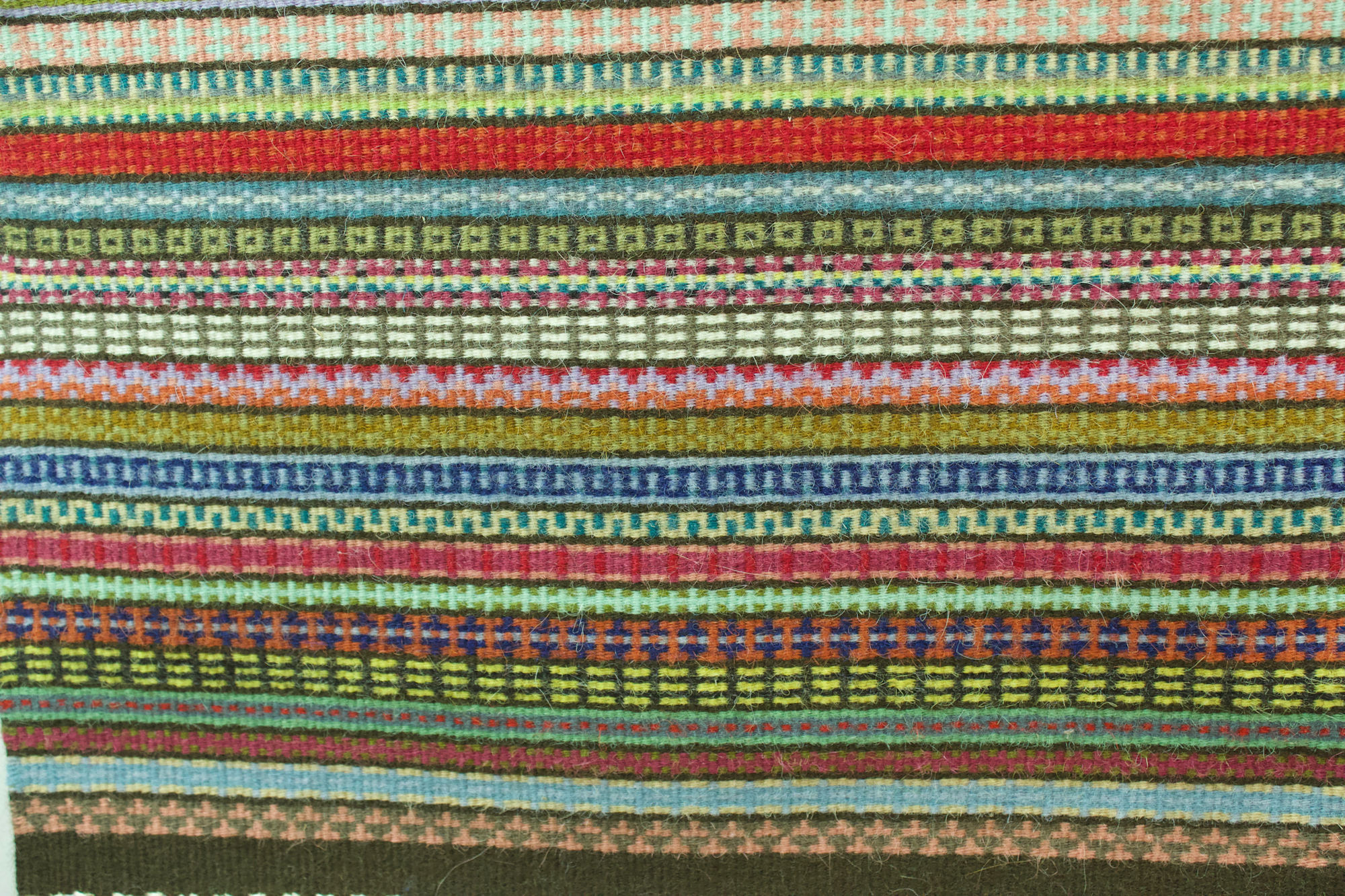 Wall hanging made from unbleached cotton and multicoloured wool.