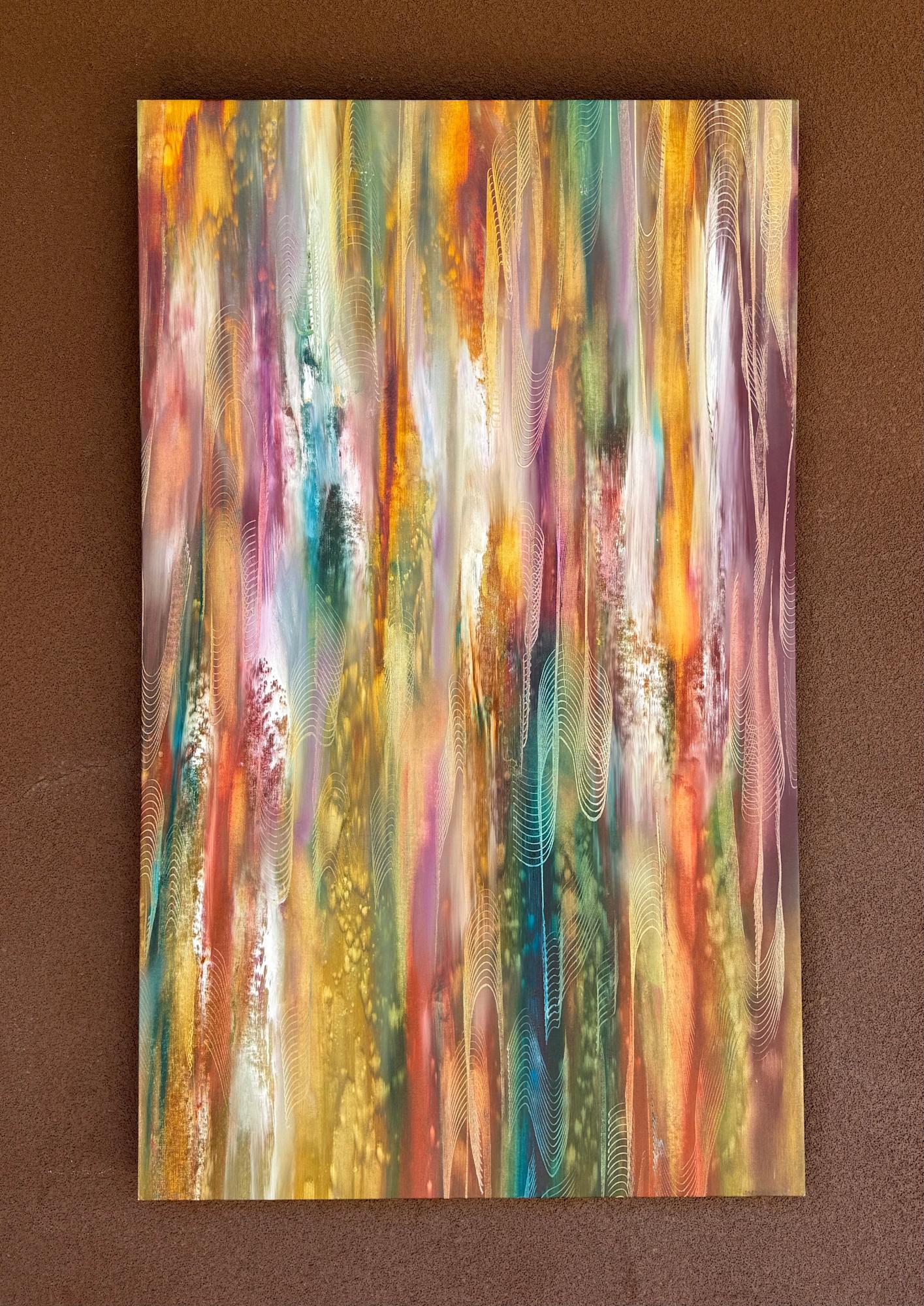 The Fantasy works are inspired by dimensions of another realm. The warm yellow and rose tones coupled with wave like strokes provide a mesmerizing view for meditation.