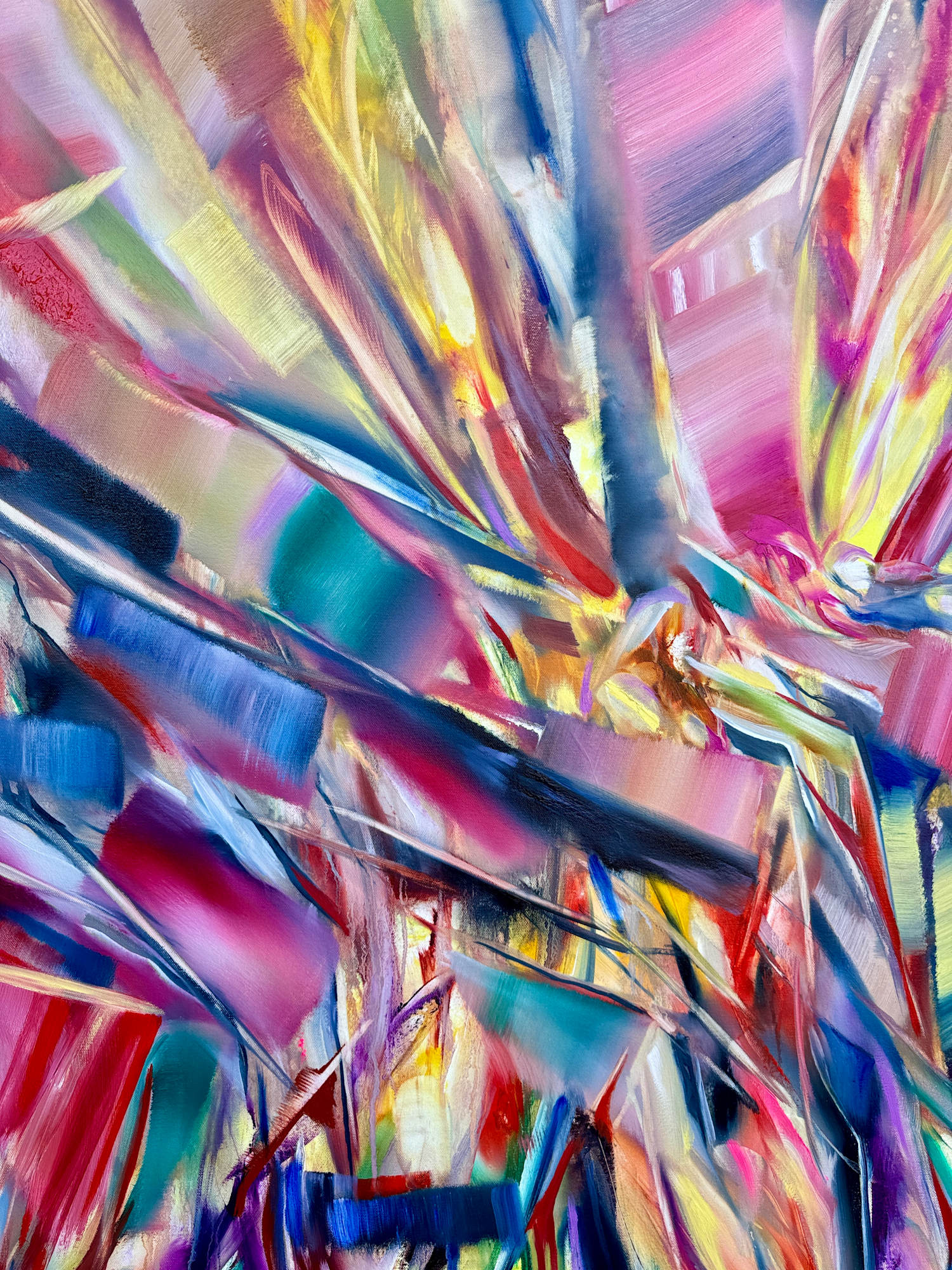 This new large-scale work is part of the new series: "Light in Motion", exploring movement, luminosity, and emotional transformation through layered oil paint.