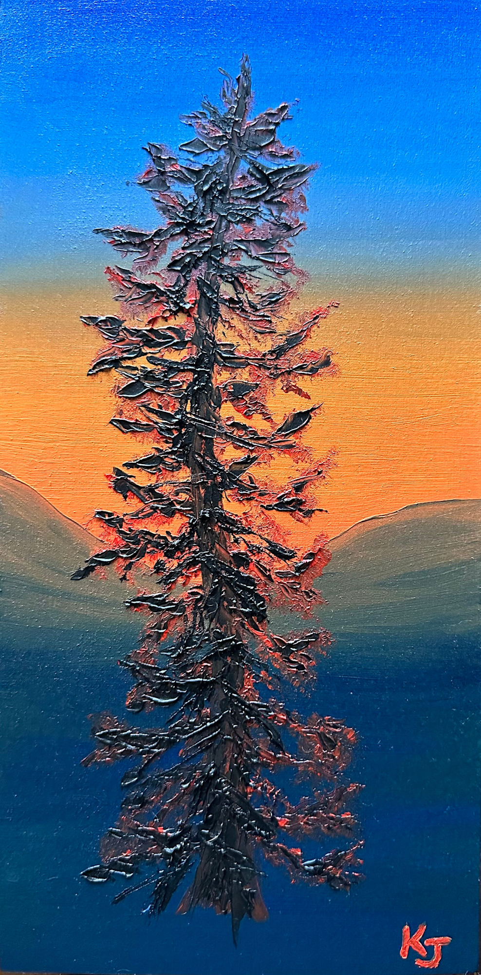 This painting was inspired by Calgary sunrises in November. It was painted as a sister painting to Dancing in the Sunrise II.