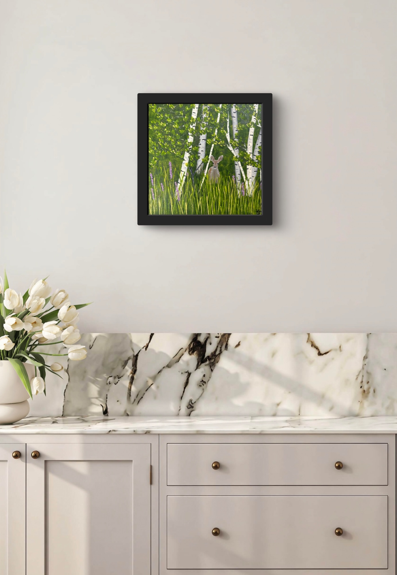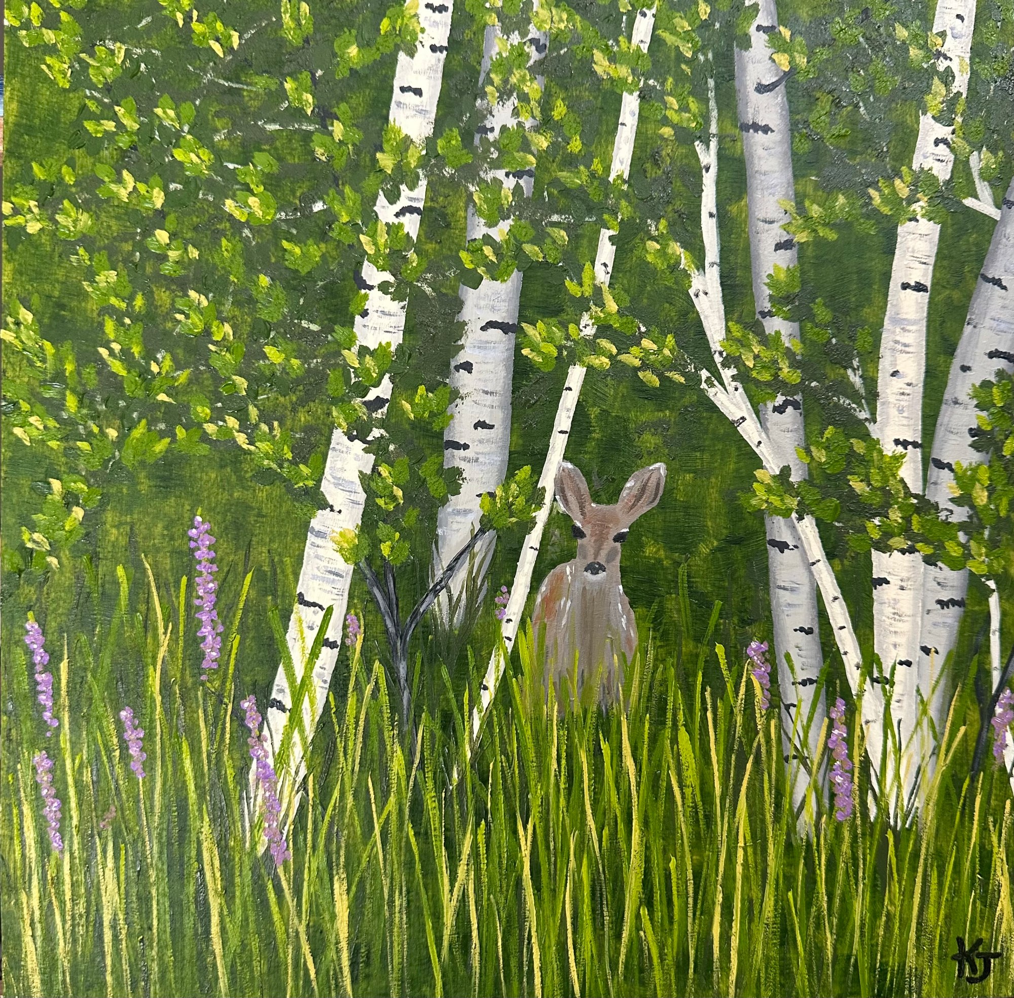 This painting captures a precious moment with a young deer in the ravine behind my home in Calgary, Canada.