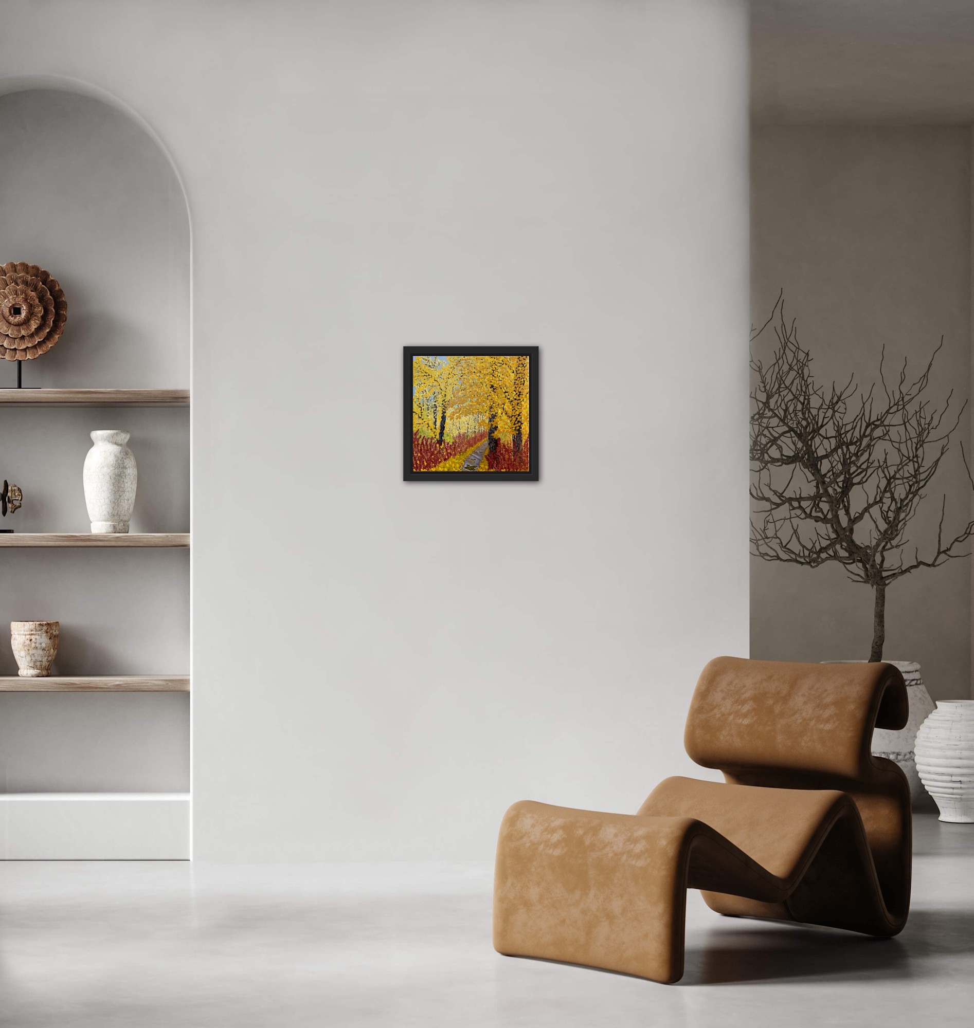 There is nothing like walking in the trees after a rain. This painting was inspired by a walk in the ravine behind my home in Alberta.