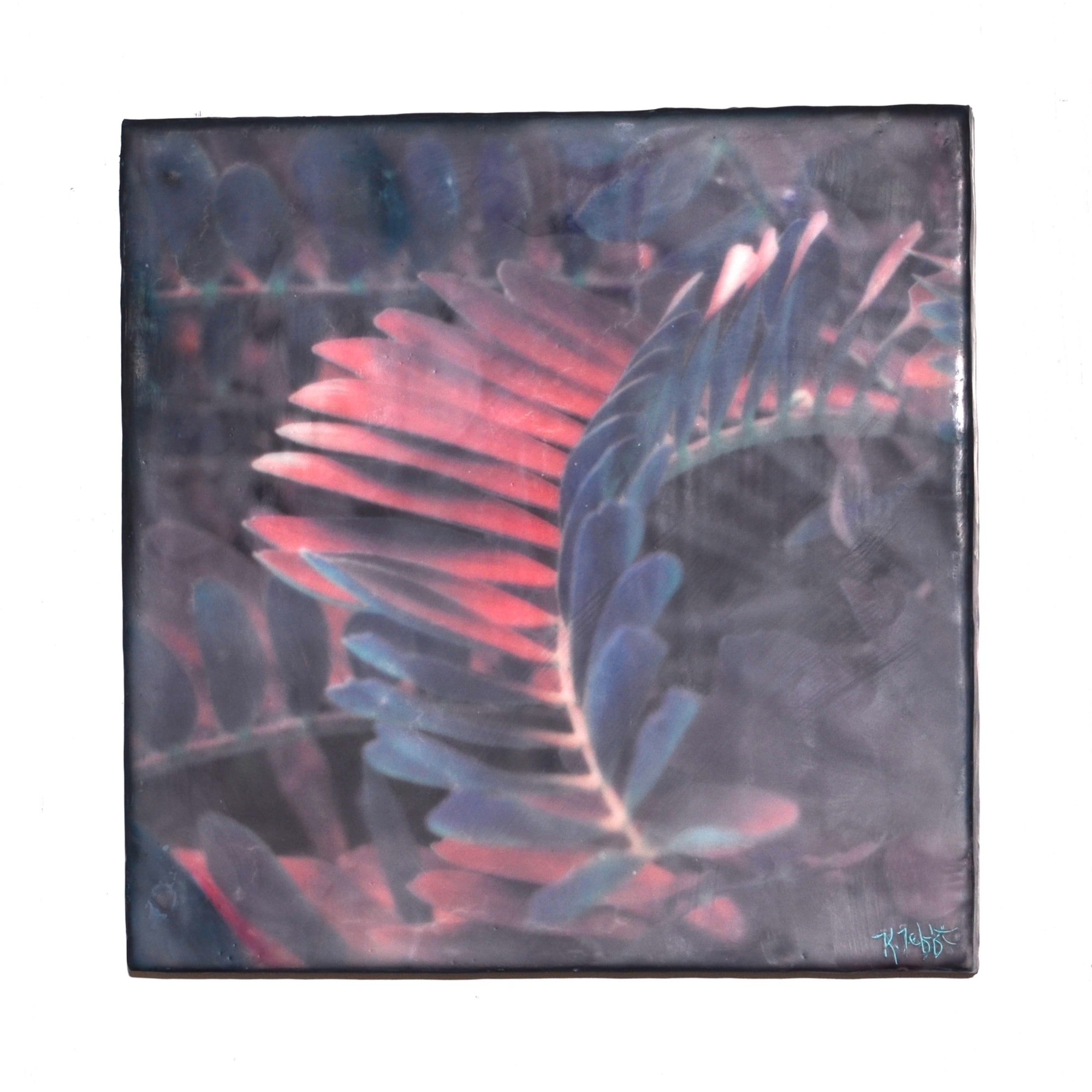 When you really look closely, nature has a beautiful architecture all it’s own. This palm plant is a true inspiration to the intricate design that’s all around us. This artwork was created by torch fusing clear encaustic medium, white encaustic paint, oil pastels and burnishing a photo of a cardboard palm plant taken in Florida.
