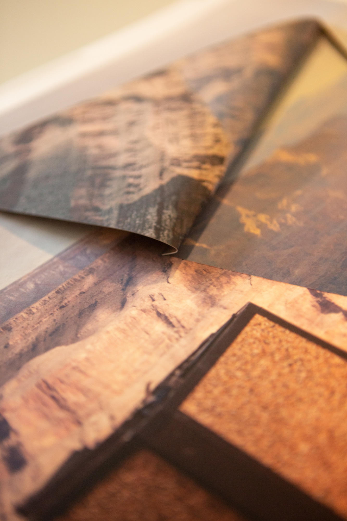 MessageThree photographs of the Grand Canyon, made within the span of one hour, are cut, folded, and reassembled into a photo sculpture.