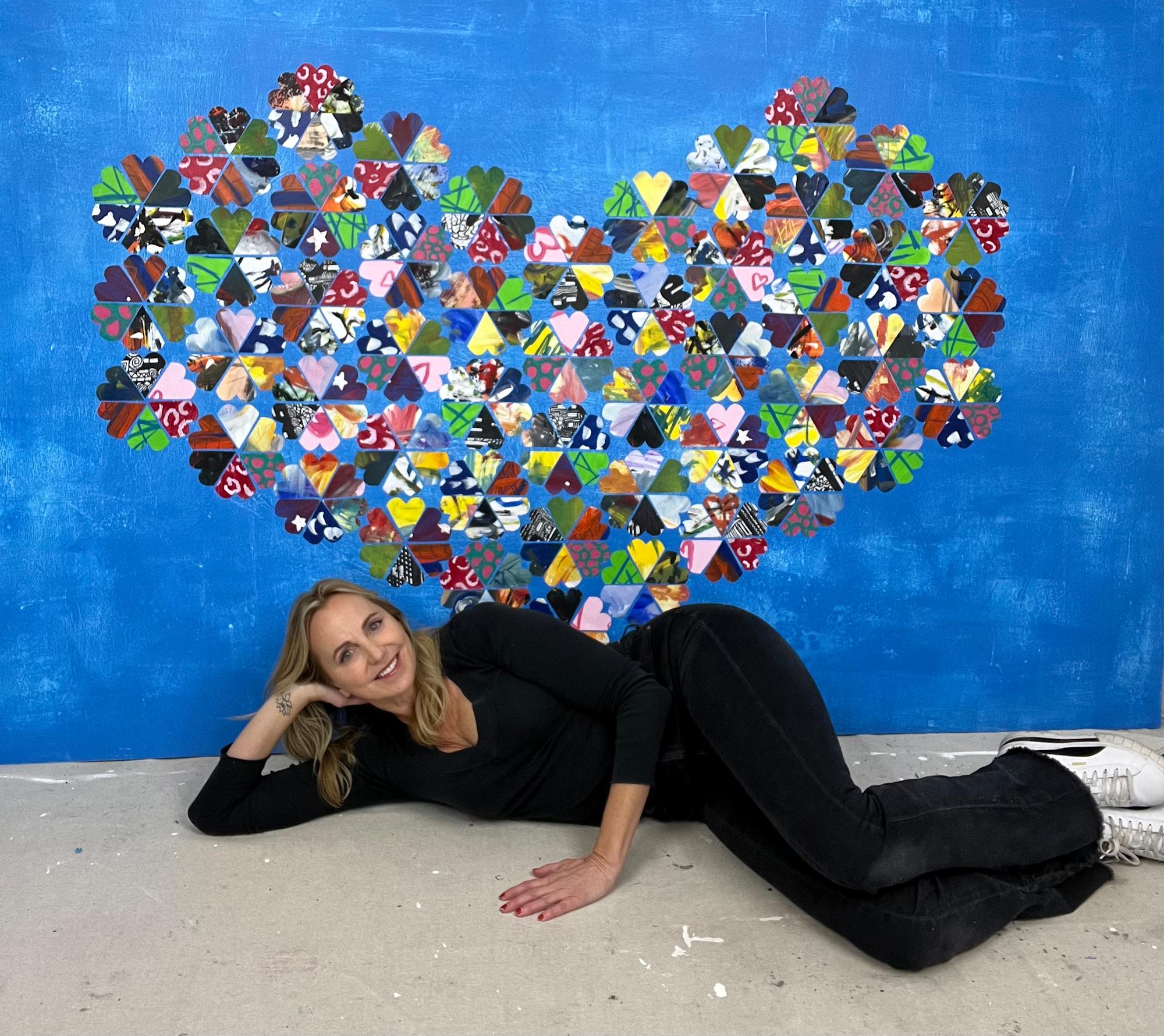 This mixed media painting was designed and created by Kristina Davies using painted papers from art workshops she taught at Brent's Place, a long term home away from home for children and their families facing life-threatening illnesses. Each painted paper, created by residents of Brent's Place in the fall of 2023, was cut into hearts and then placed upon a hexagonal grid system created by the artist. This mural represents a message of strength, hope, and love for all children and their families at Children's Hospital.