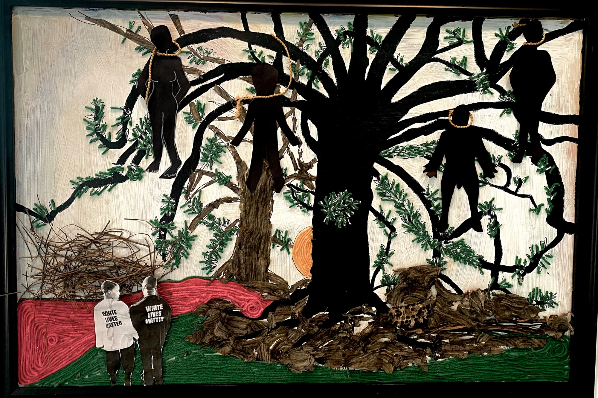 This painting represents how people of color who have power and influence can so easily be brainwashed to forget the struggle of our ancestors that sacrificed their lives to give us the (little) protections that will have today.