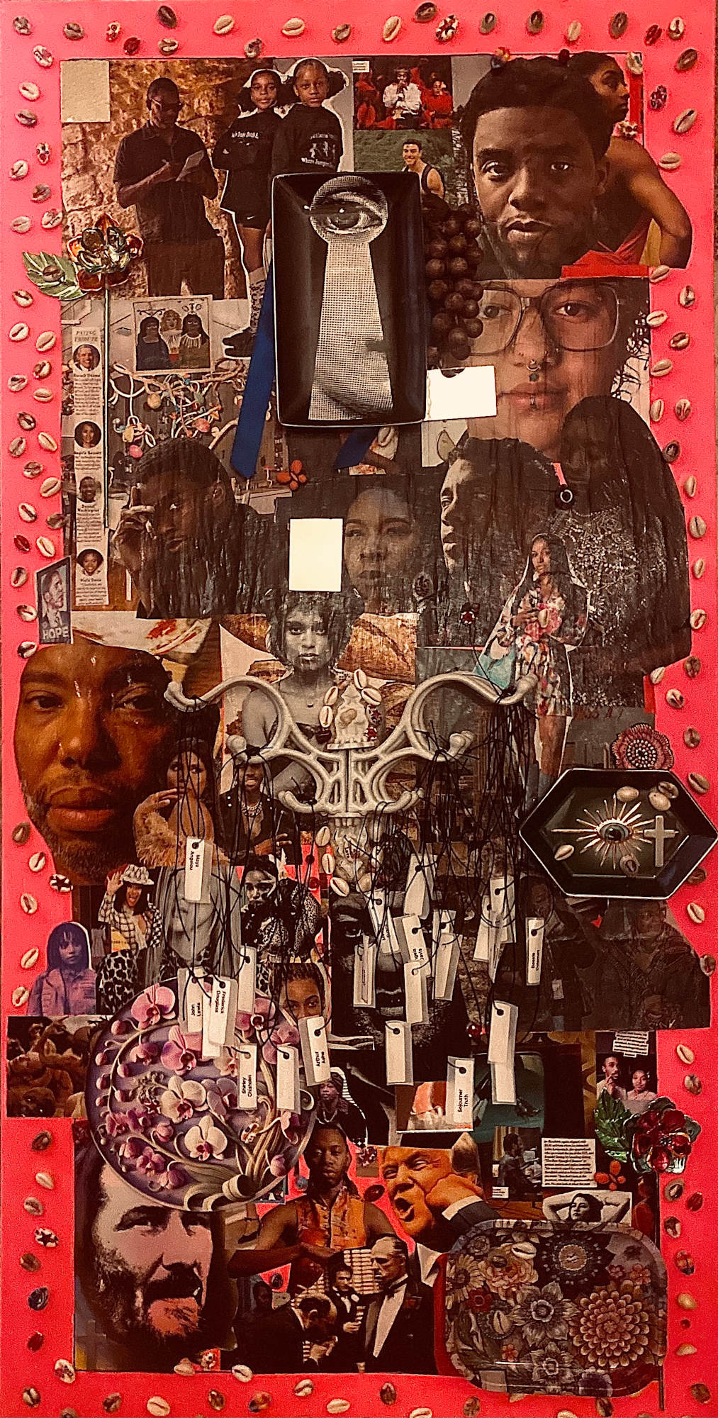 This contemporary abstract painting honors the majority of influential prolific black artists and also regular everyday Black people, dead and alive with a touch of irony with Donald Trump punching himself in the jaw because why not? No matter what, we exist and will continue existing. Black Lives will always matter and no matter what white supremacy does, we aren’t going anywhere.