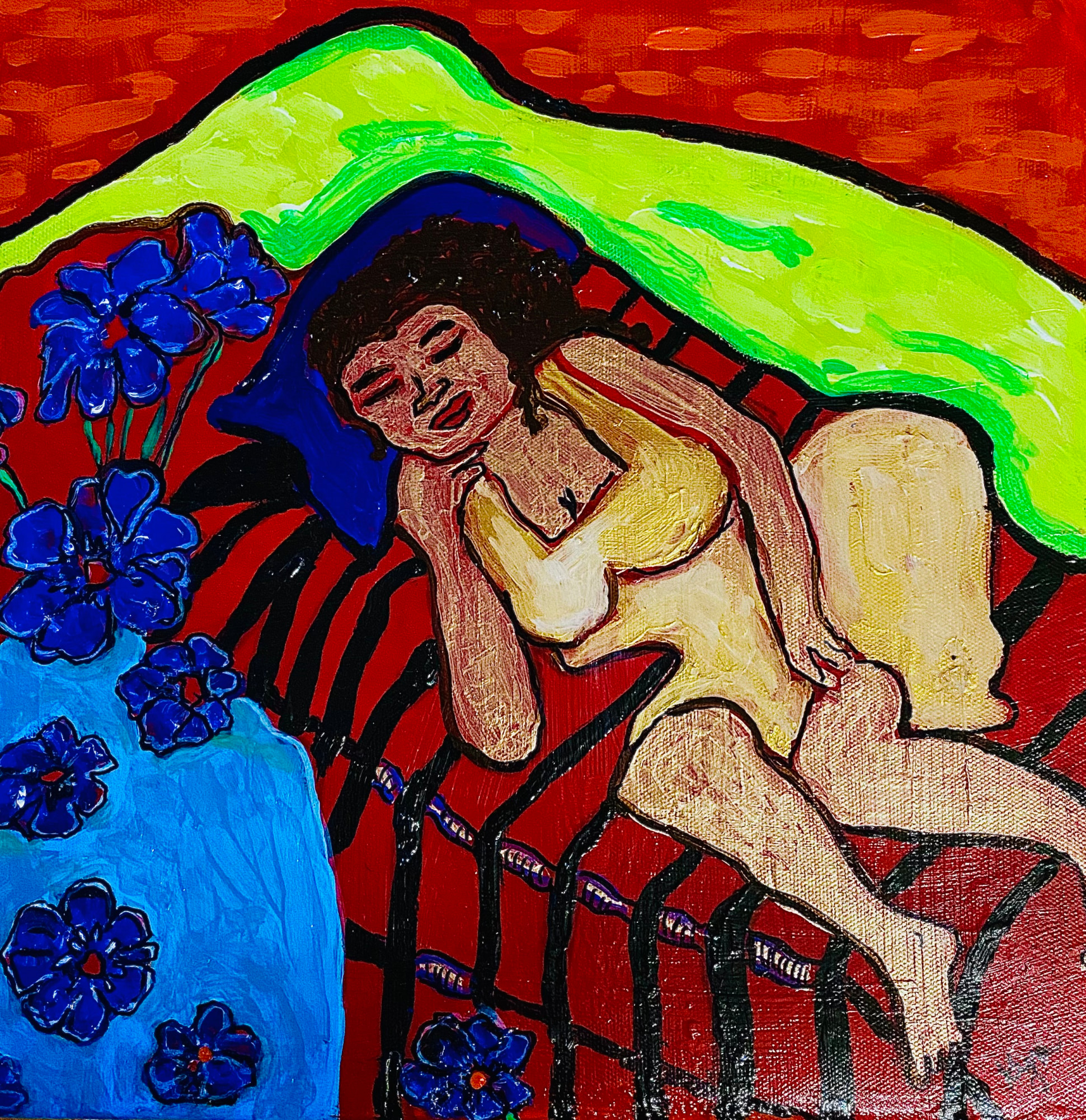 Beautiful black woman resting in her bedroom