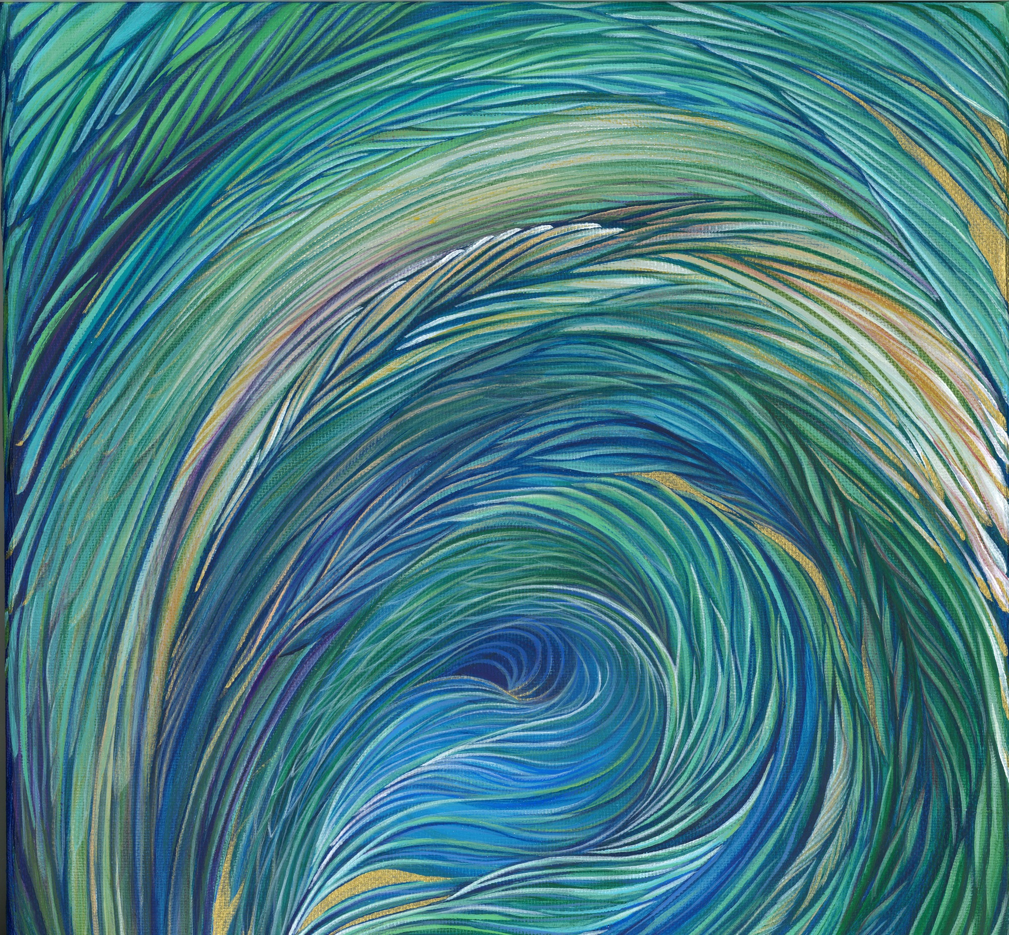 Inspired by the lush new growth that is the result of spring rains, this piece celebrates dewy mornings, fresh leaves, new growth and tranquil walks in abundance with a bountiful harvest. Enter the garden to find peace, tranquility and calm in the tempest.
