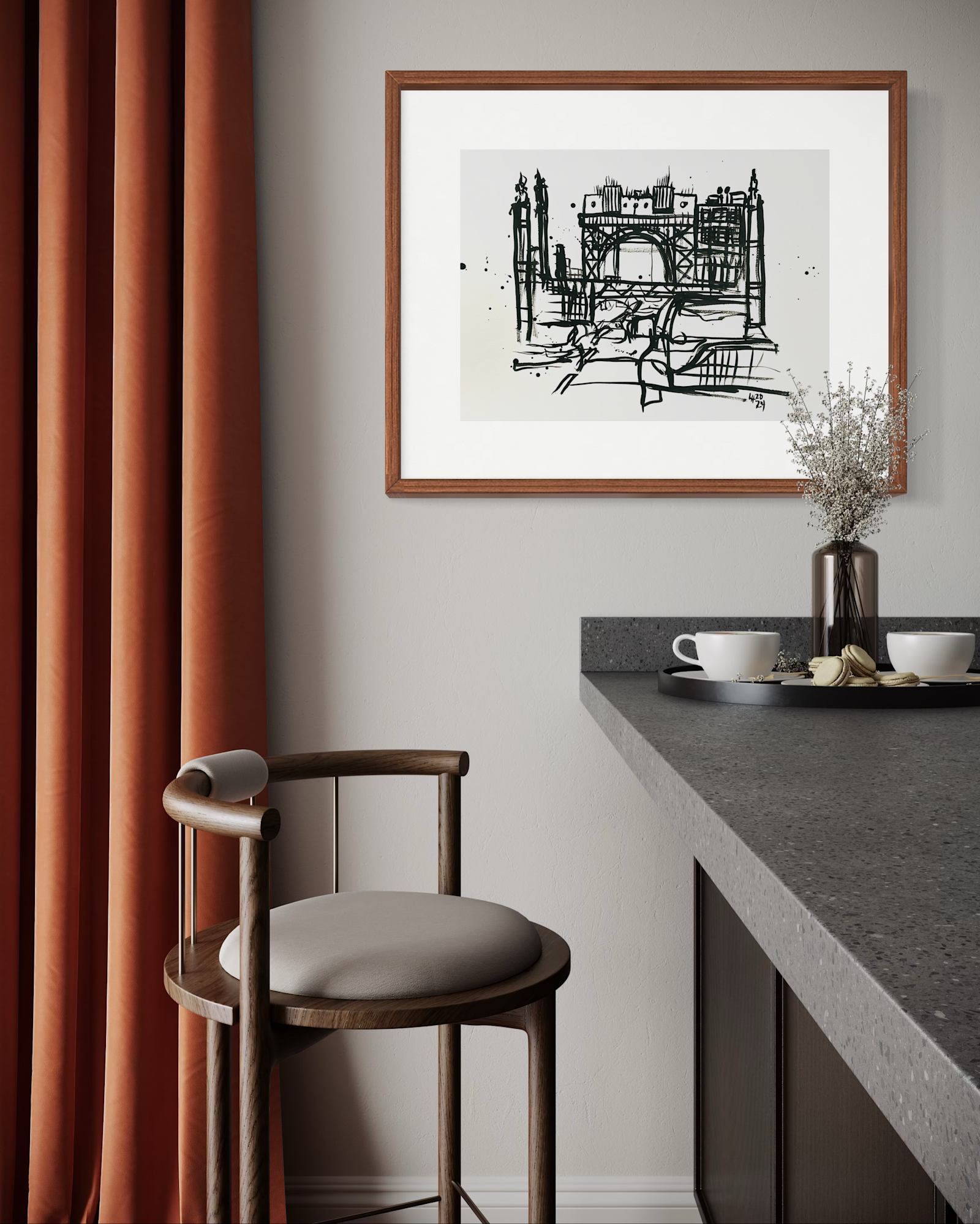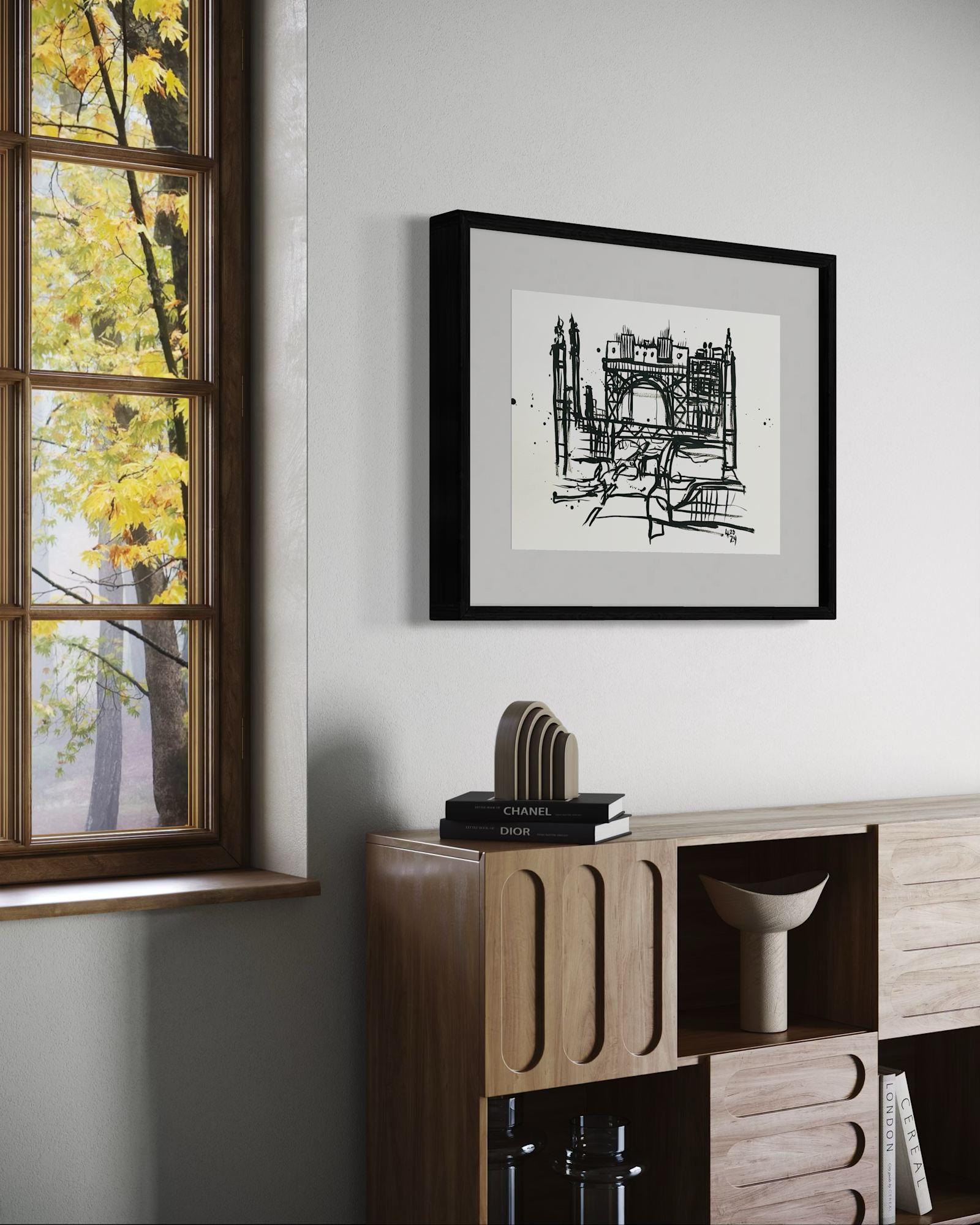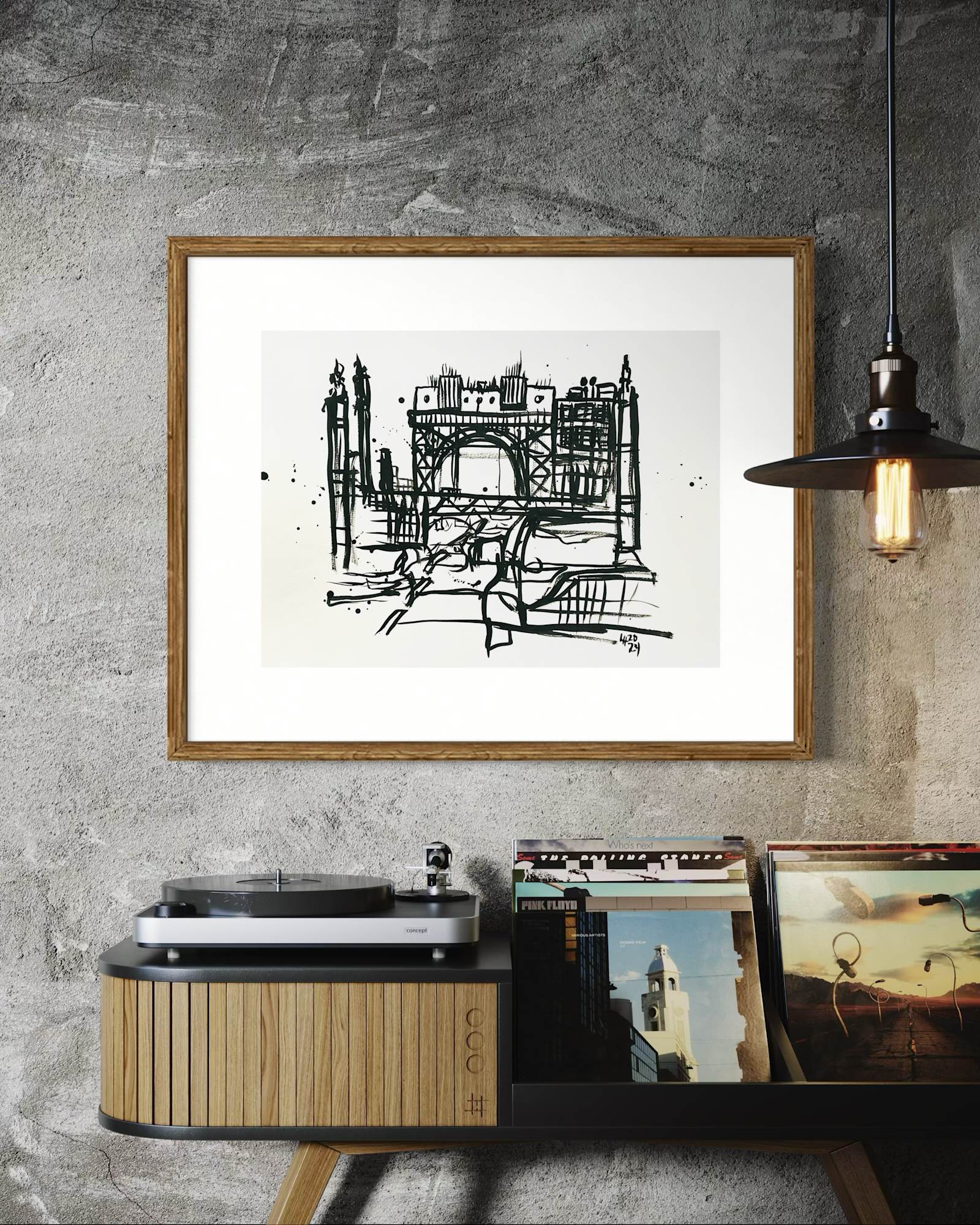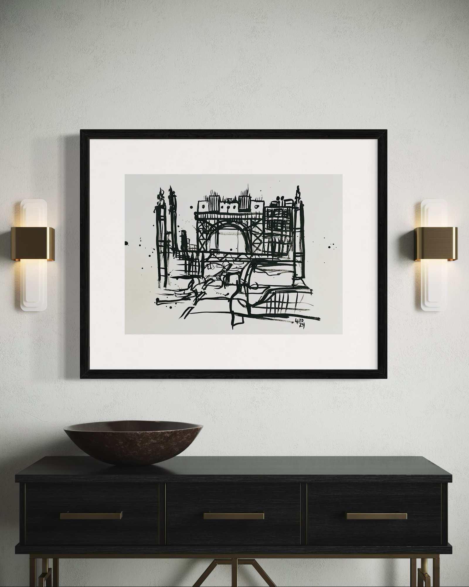 After a trip to New York City, and many photos of bridges, buildings, and places, I found myself drawn back not to a particular bridge, but to the experience of driving on, or under, a bridge. This is an amalgam of bridges to elicit that experience, the transition across something - another street, a body of water - into the heart of a place. Note: Unframed. Shipping not included.