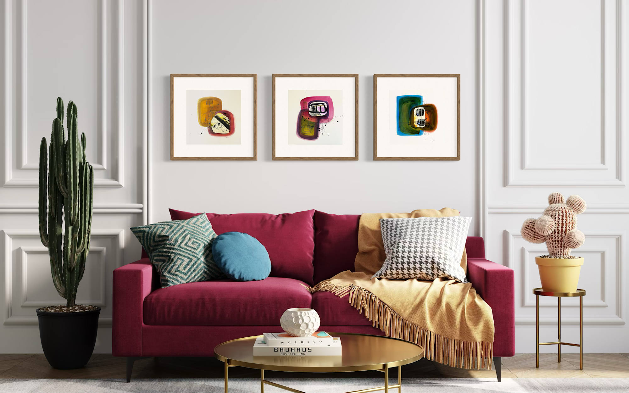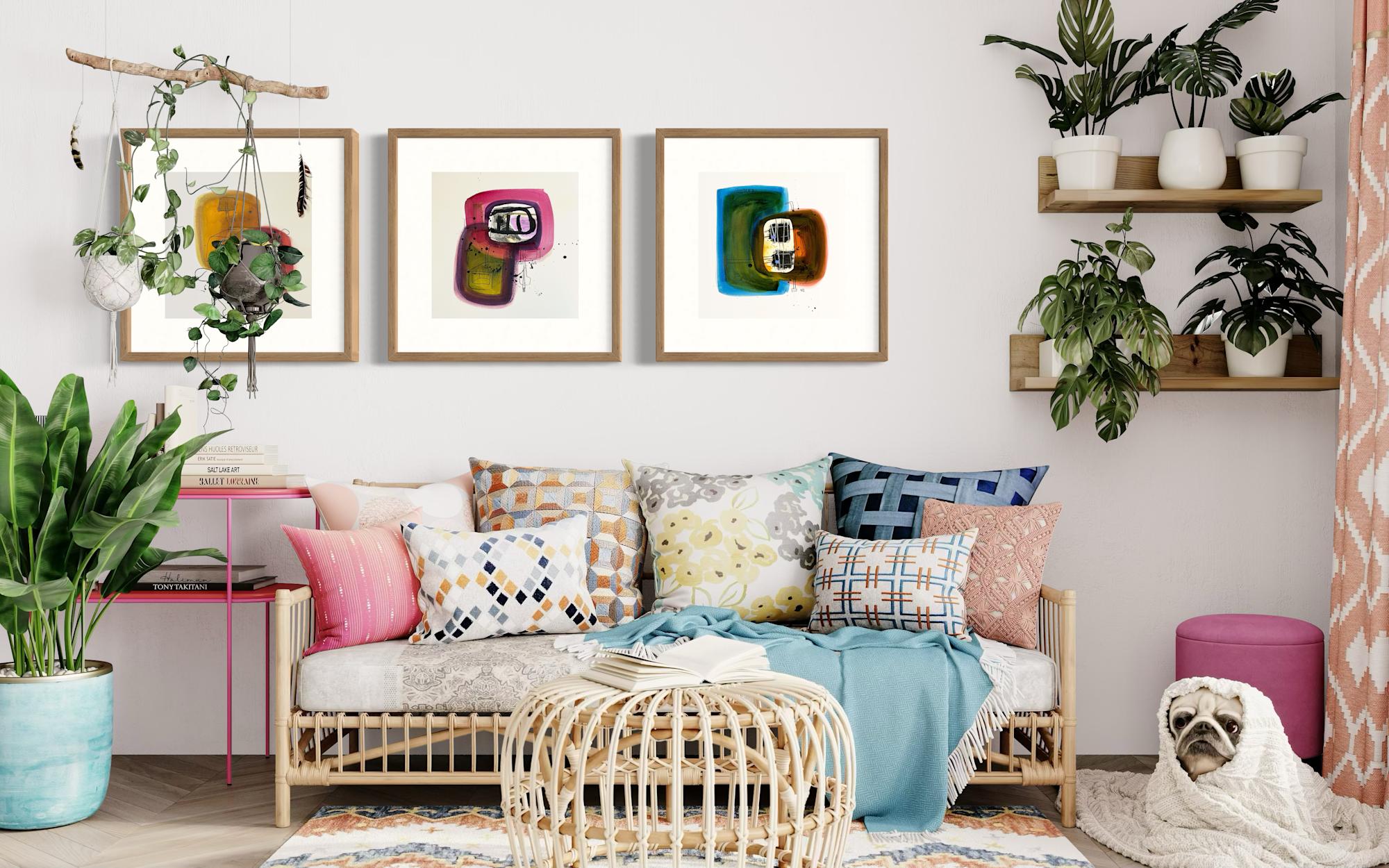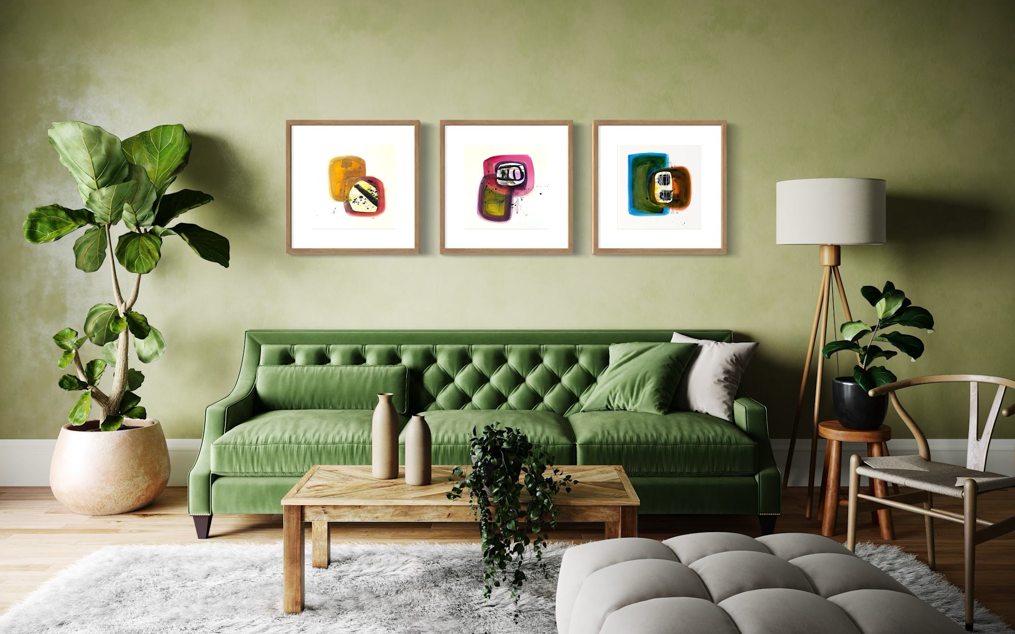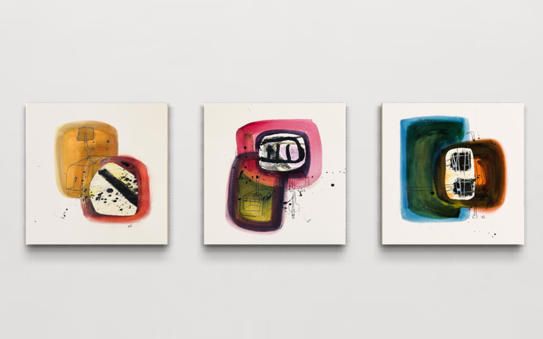 This suite of three works is a simplification of systems through the use of organic forms. Together, they give us pause about the location of elements within systems.