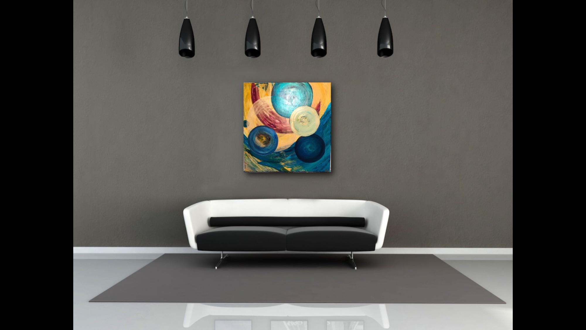 Abstract original painting on canvas titled a”Mystical Orbs" is Acrylic Mix Media Painting size 36x36 in , on Gallery Wrapped Canvas, Perfect fo any room to bring colors and up lifting energy.