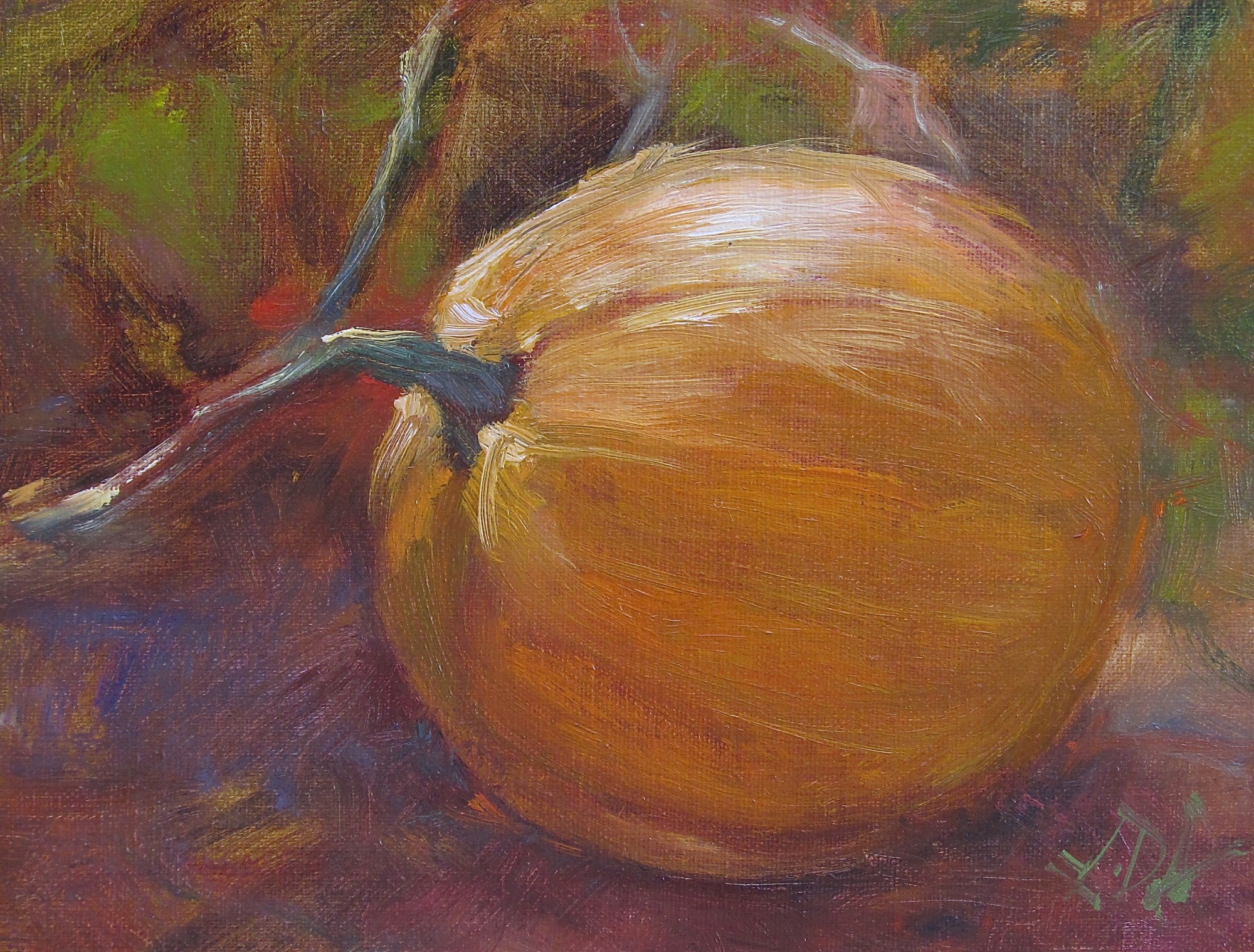 Plein air oil on linen/panel. Painted at Munson's Pumpkin Patch. Varnished and framed.