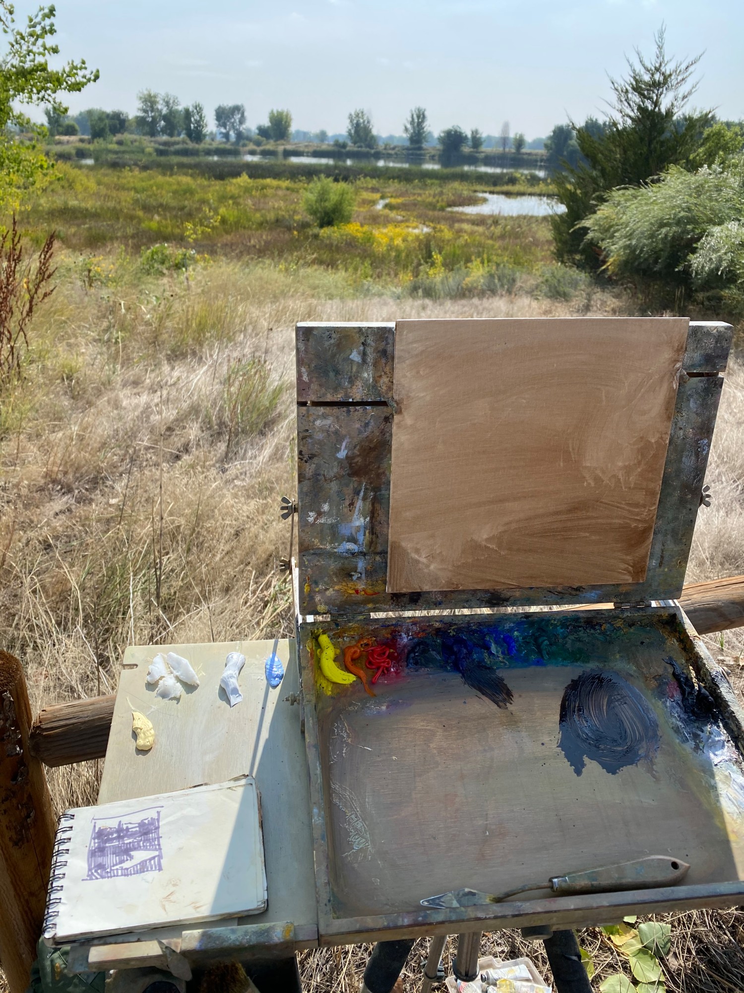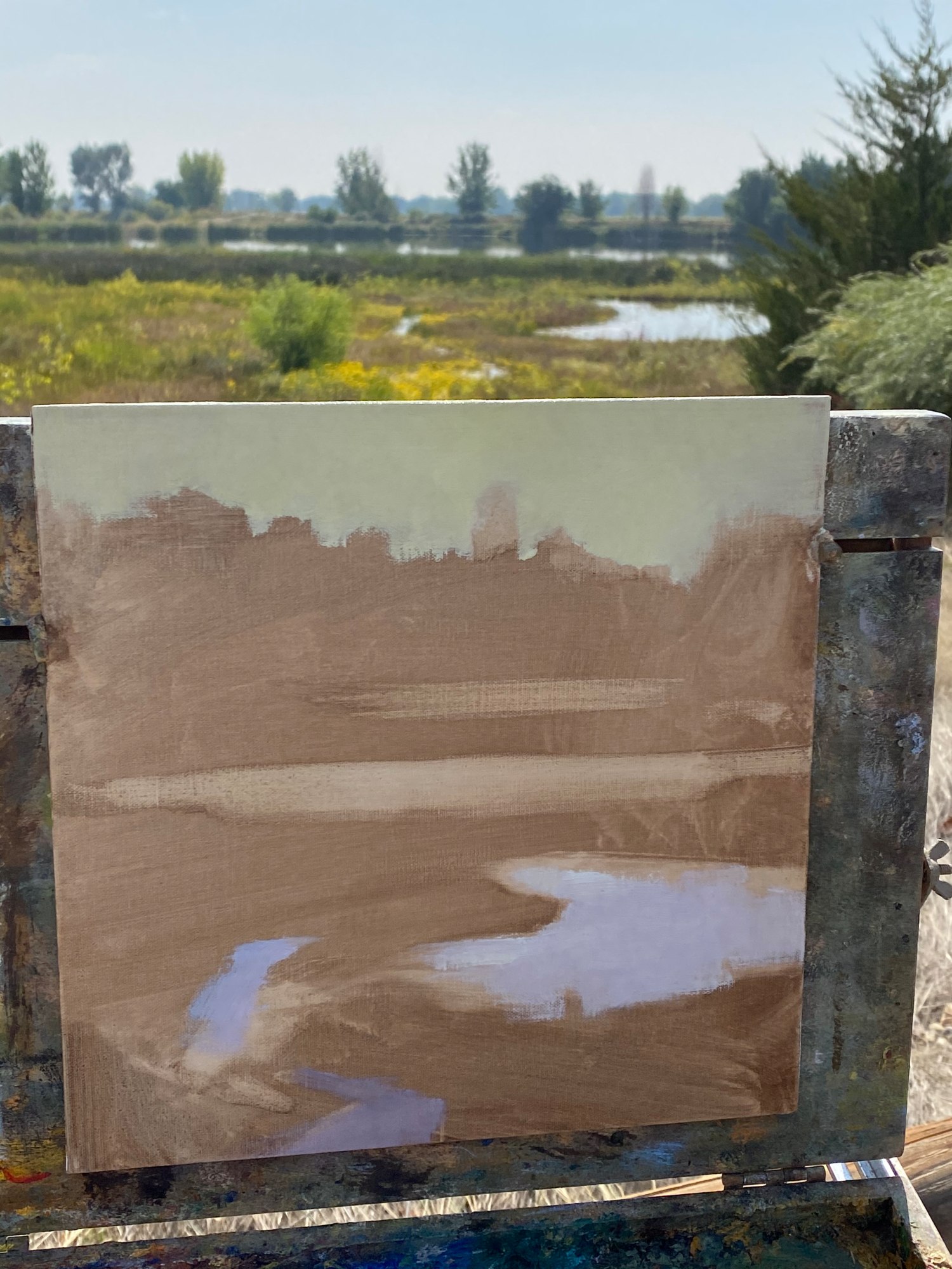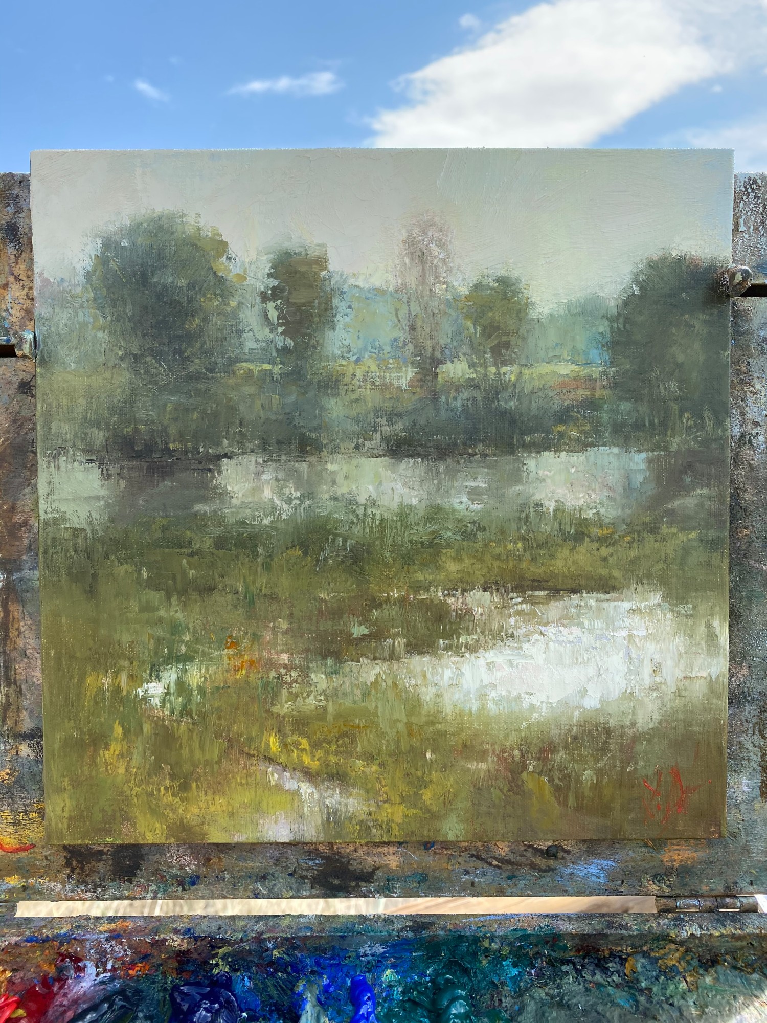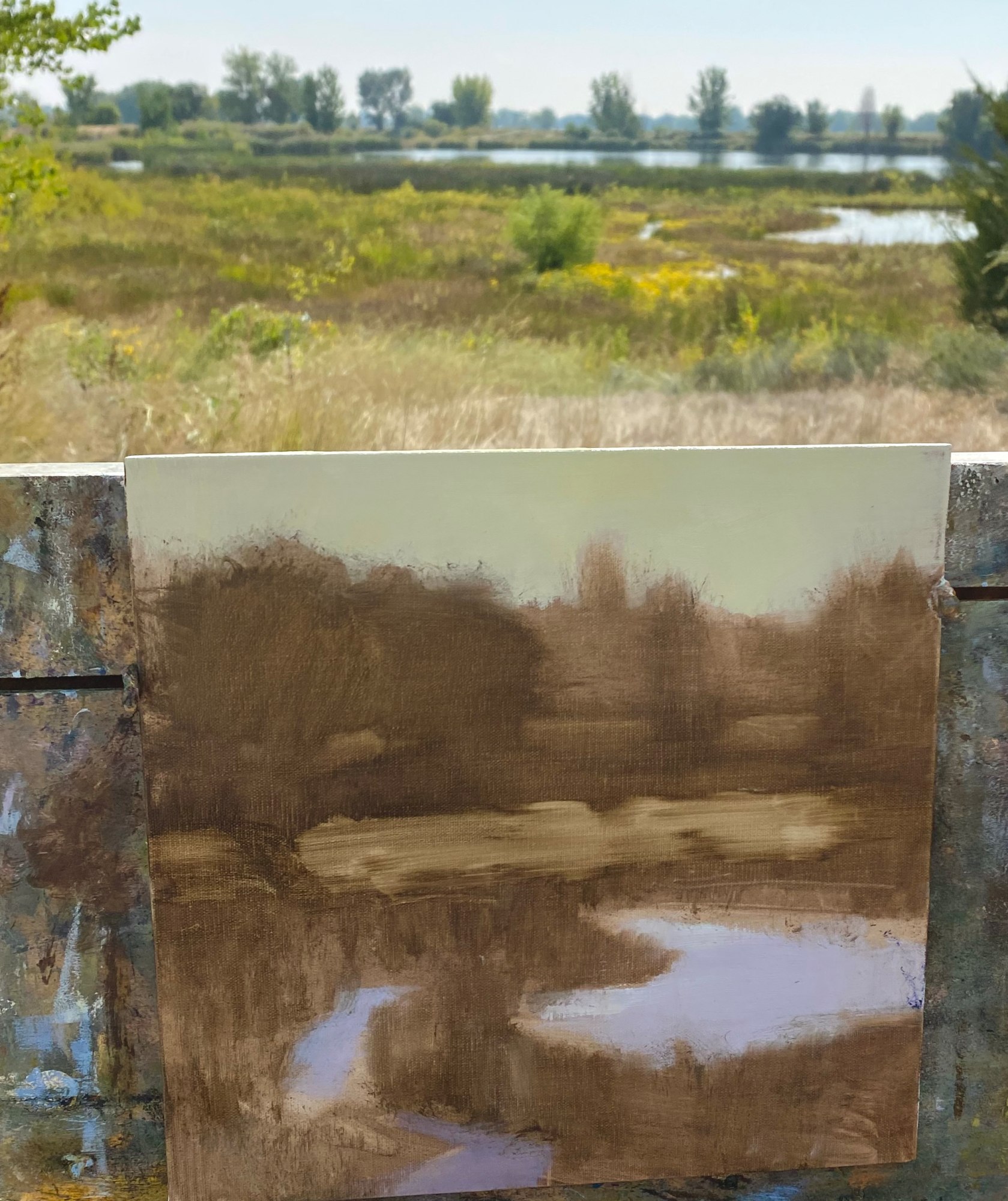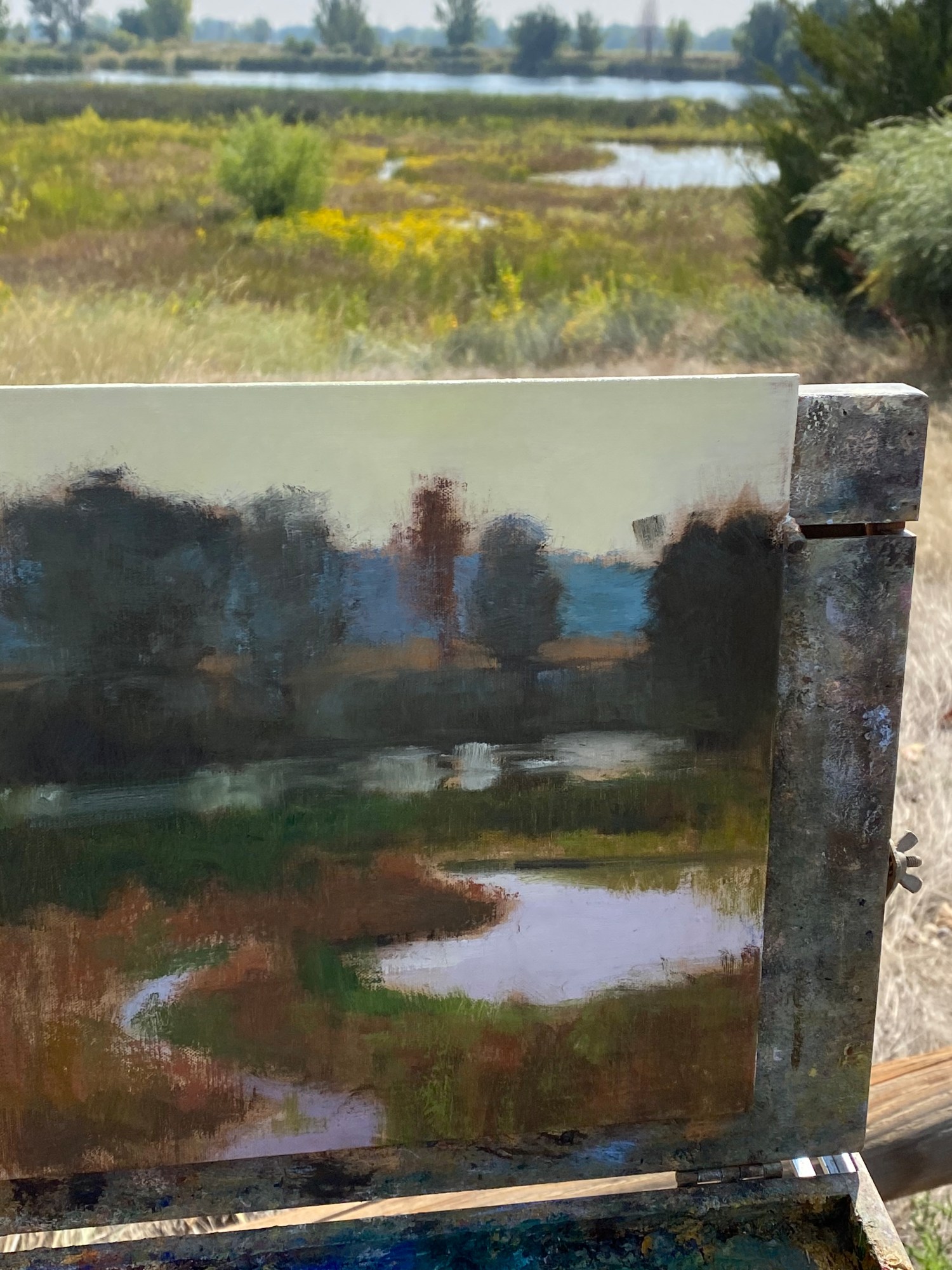 The light and colors of a mid-September morning at the wetlands at Pella Crossing, Hygiene, CO. Painted during International Plein Air Painters Worldwide Paint-Out in 2020
