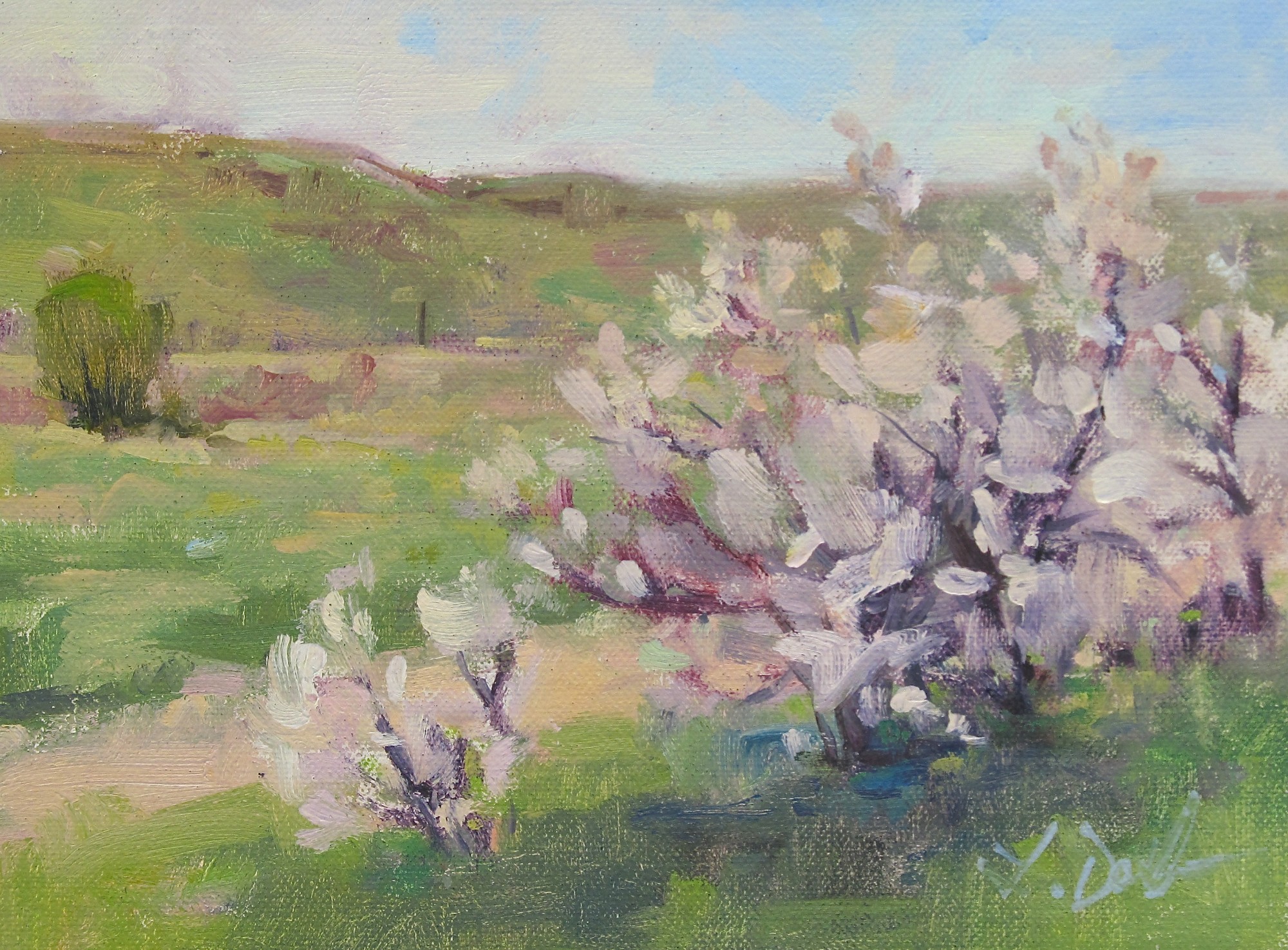 Plein air oil on linen/panel. Painted on location roadside near Rock Creek, CO. Brown stained wood frame.