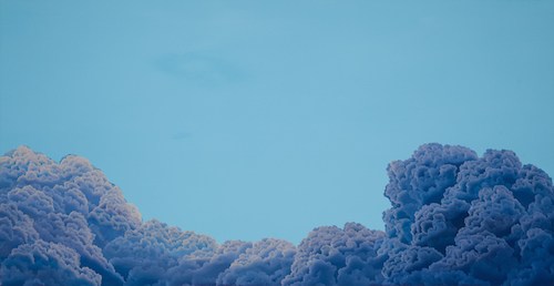 This series of paintings isolates the shapes found in building thunderheads onto a solid background. The clouds appear strong and solid, yet they are simply water vapor. It is my hope that the viewer becomes lost in the intricate details of the clouds and is transported to a meditative and peaceful place.