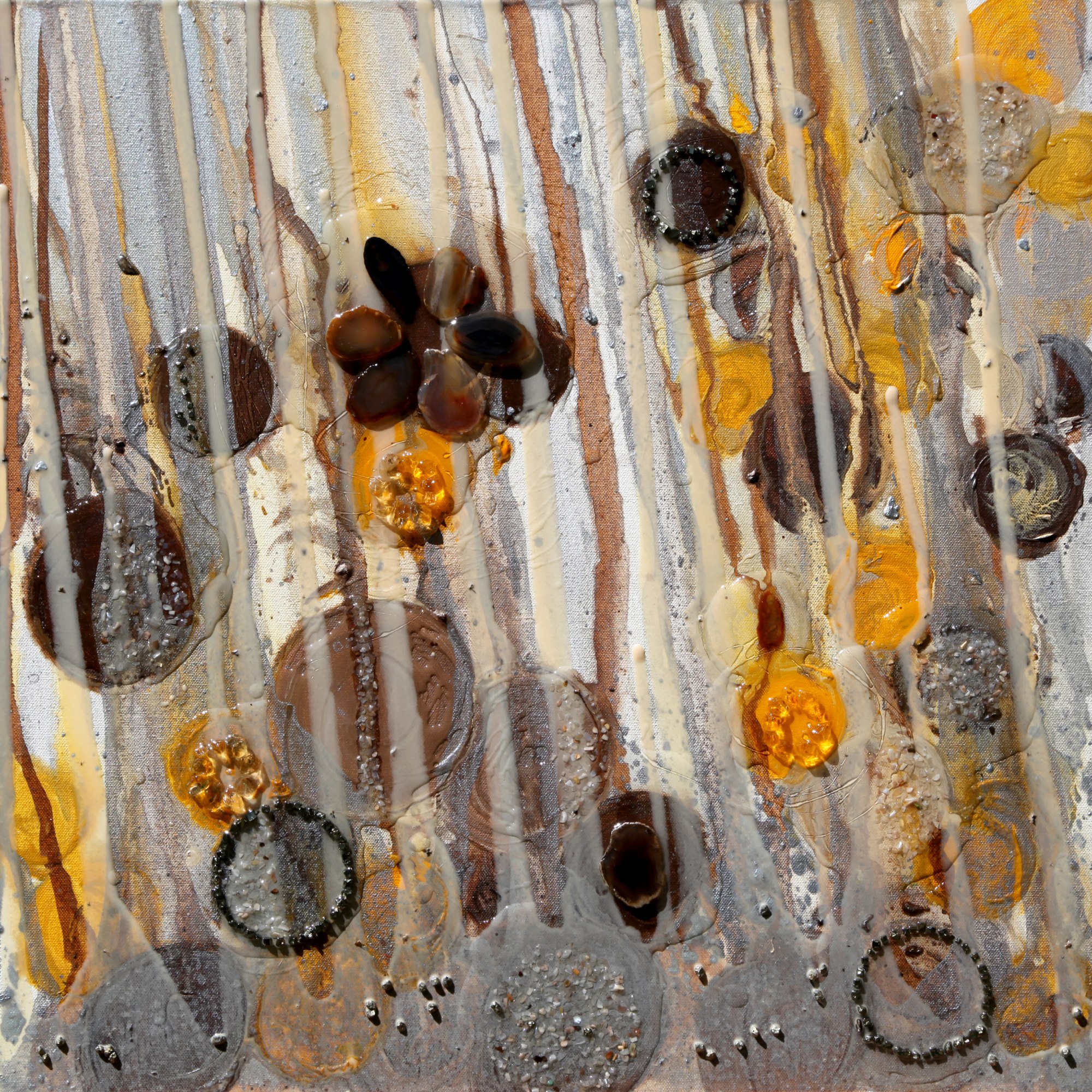 Pyrite and golden citrine encircles little beings of light. How do we know what the spheres and orbs are that we see in photographs or out of the corner of our eyes? These tiny entities appear around sacred spaces, flowing water and even in our homes, like someone's consciousness peaking in on us.