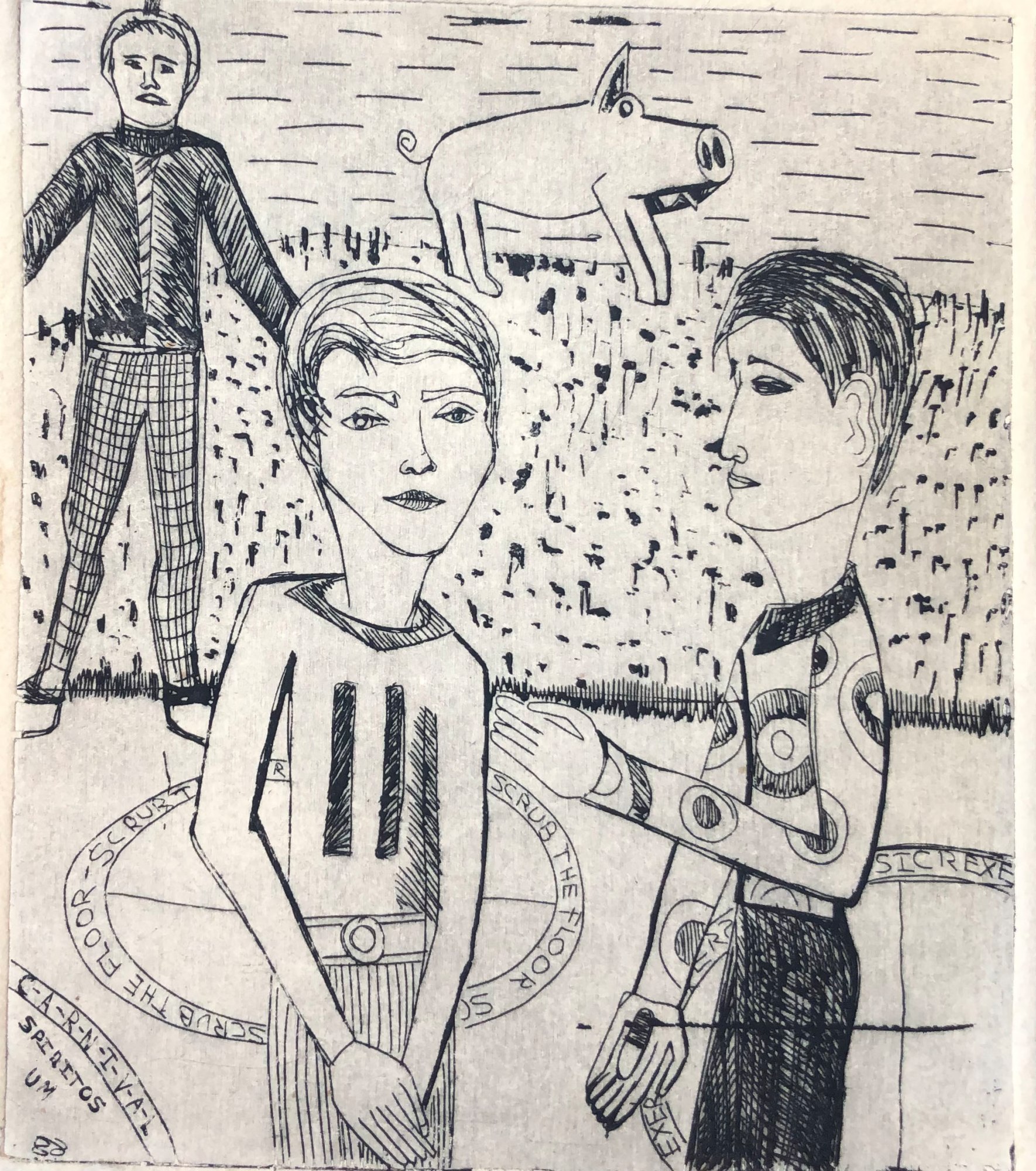 Zinc plate etching on Arches paper. Proof for the book "Carnival"
