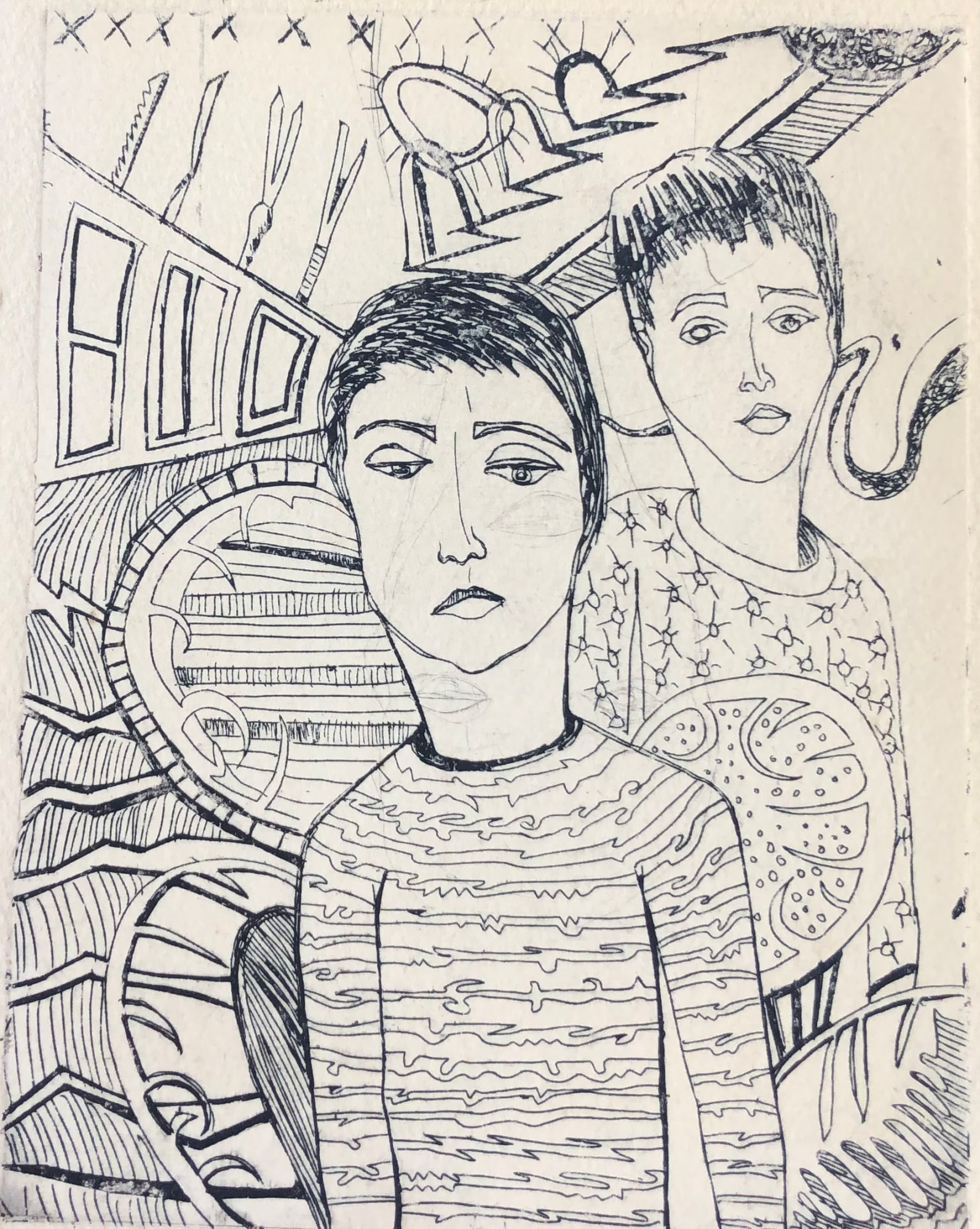 Zinc plate etching on Arches paper. Proof for the book "Carnival"