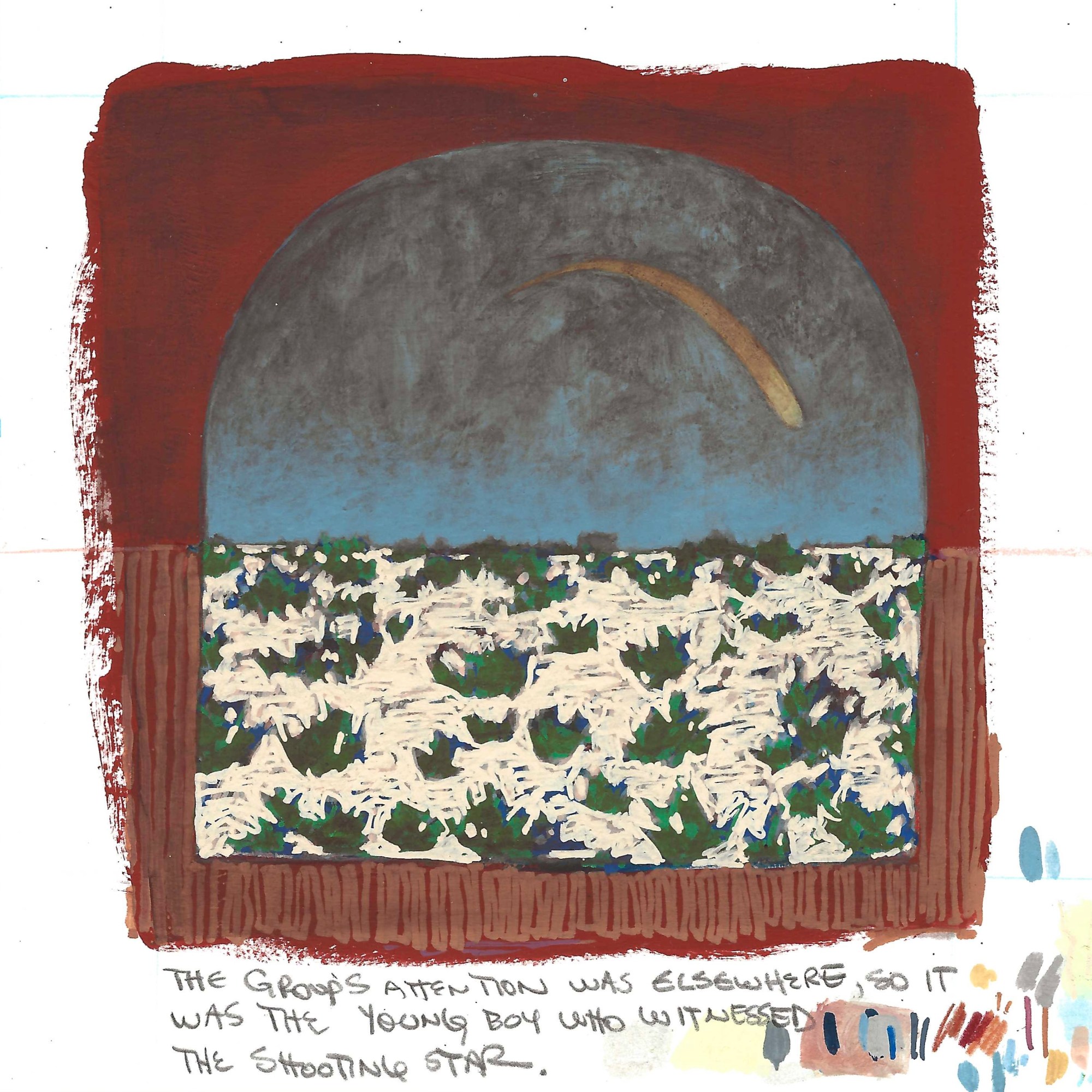 “The small group’s attention was elsewhere, so it was the young boy who witnessed the shooting star.”