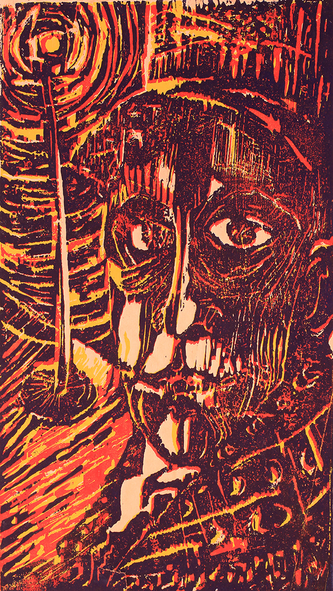 Tony Lazorko (1935–2017) created multicolored woodcut prints with scenes of America from Philadelphia to St. Louis to the American West in Mesilla, New Mexico.