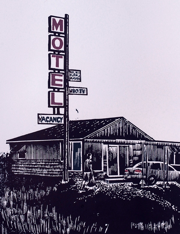 Tony Lazorko (1935–2017) created multicolored woodcut prints with scenes of America from Philadelphia to St. Louis to the American West in Mesilla, New Mexico.