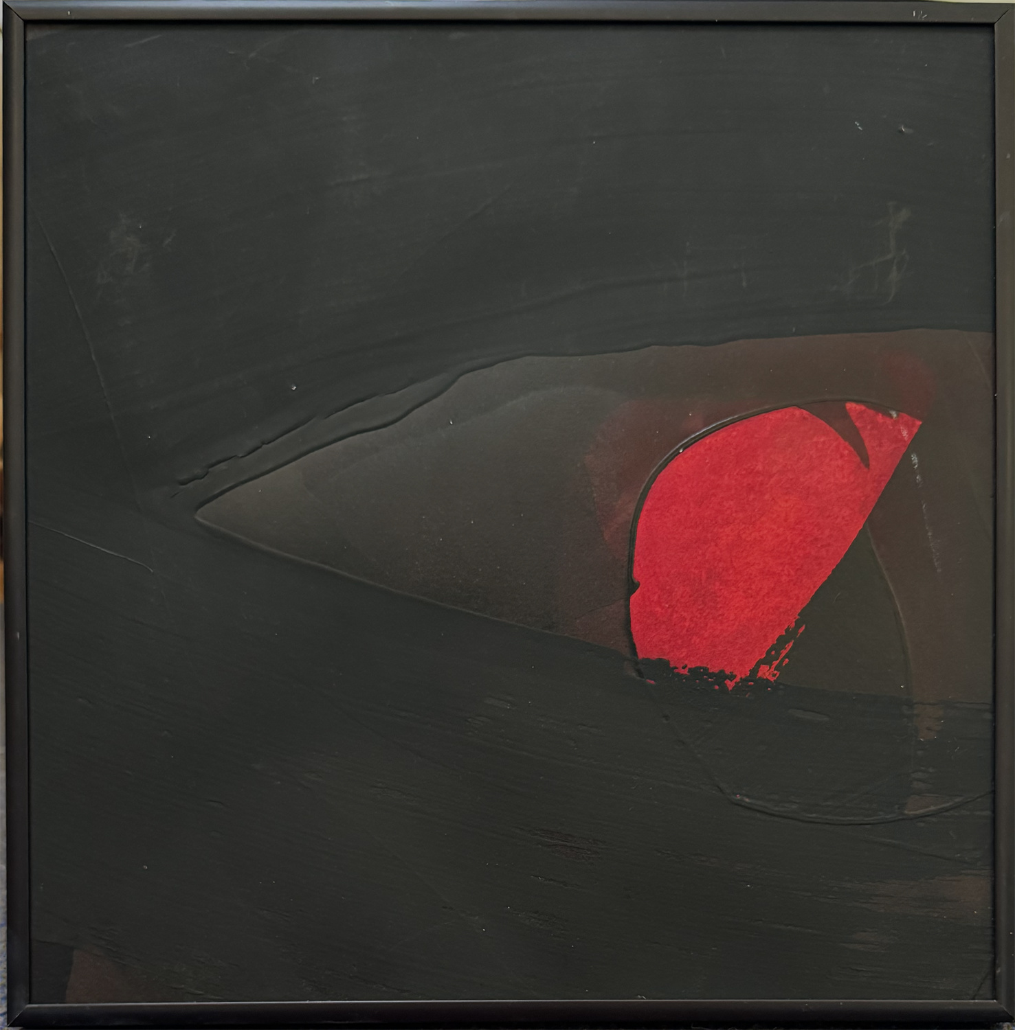 oil paint, cold wax on rag paper. In black metal frame.