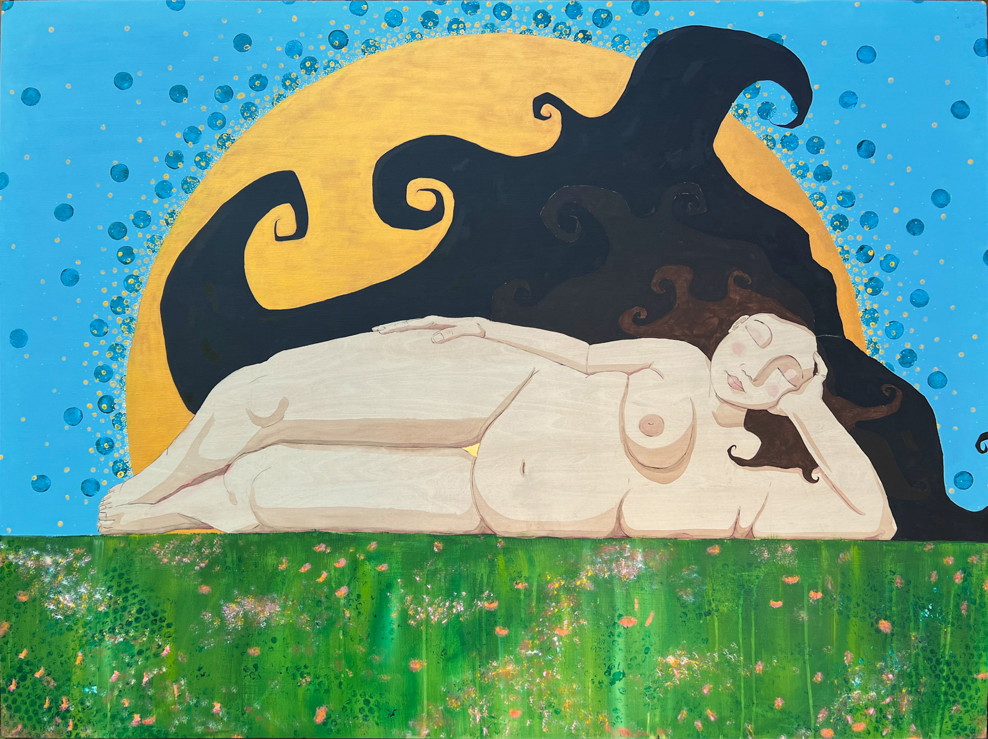 "Grounded, (or "From Where the Light Shines")" is a one of a kind, original painting. I created it using mixed media including acrylic, Prismacolor Ebony pencil, 24k gold leaf, and Posca paint pens on a solid 36" x 48" wood panel. The mediums are carefully layered for maximum archival quality and sealed with varnish. It is signed on the back and ready to hang.
