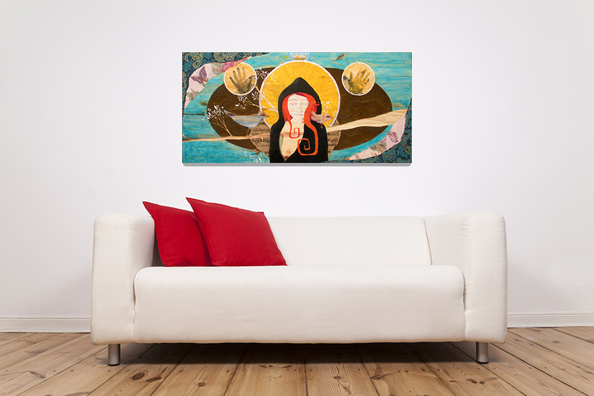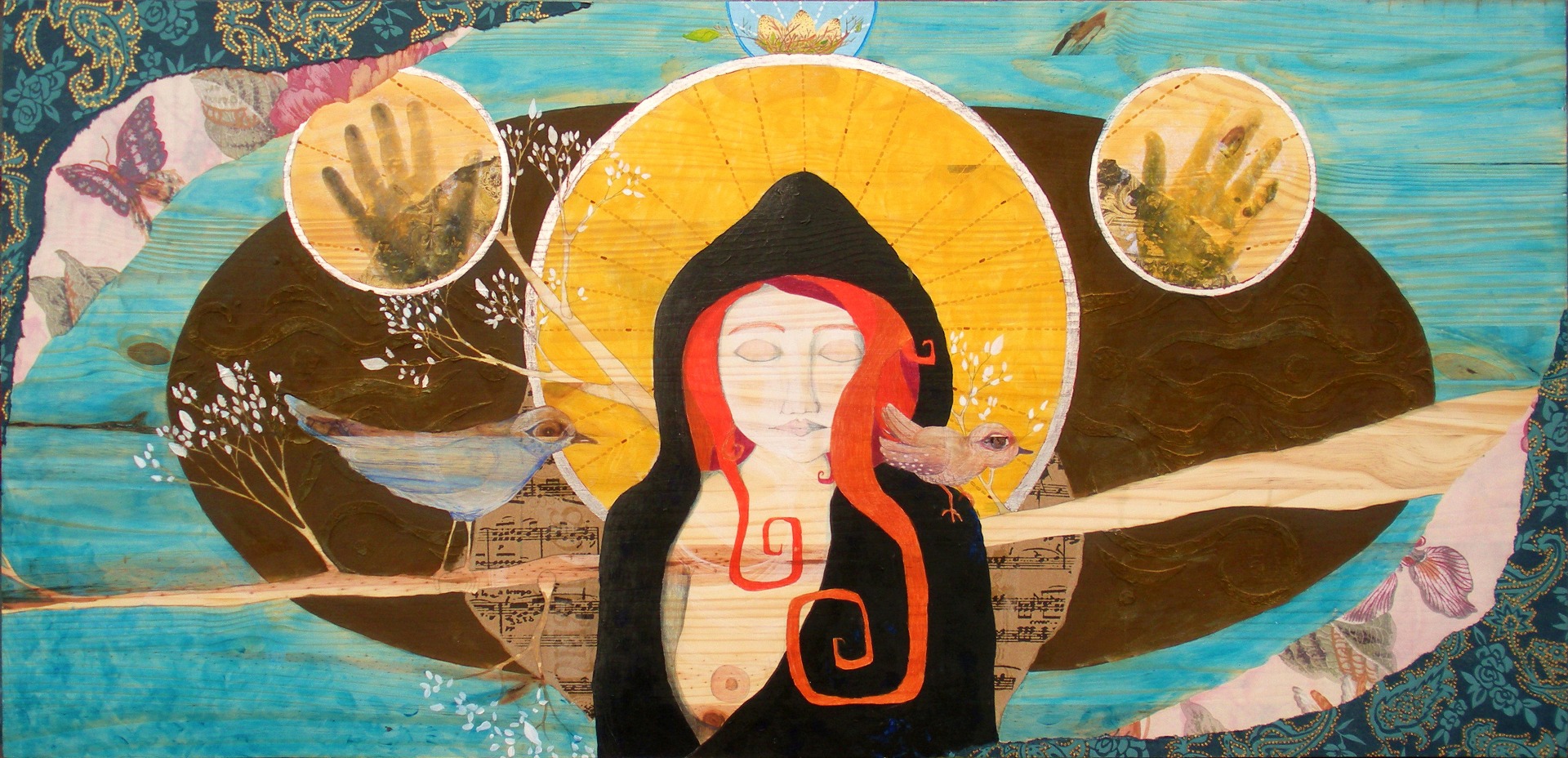 "Radiance," is a one of a kind, original painting. I created it using a variety of mixed media including paint, graphite, paper, silver leaf, rust, and more on a solid 2' x 4' wood panel. The mediums are carefully layered for maximum archival quality. It is ready to hang as is or you can easily have it framed.