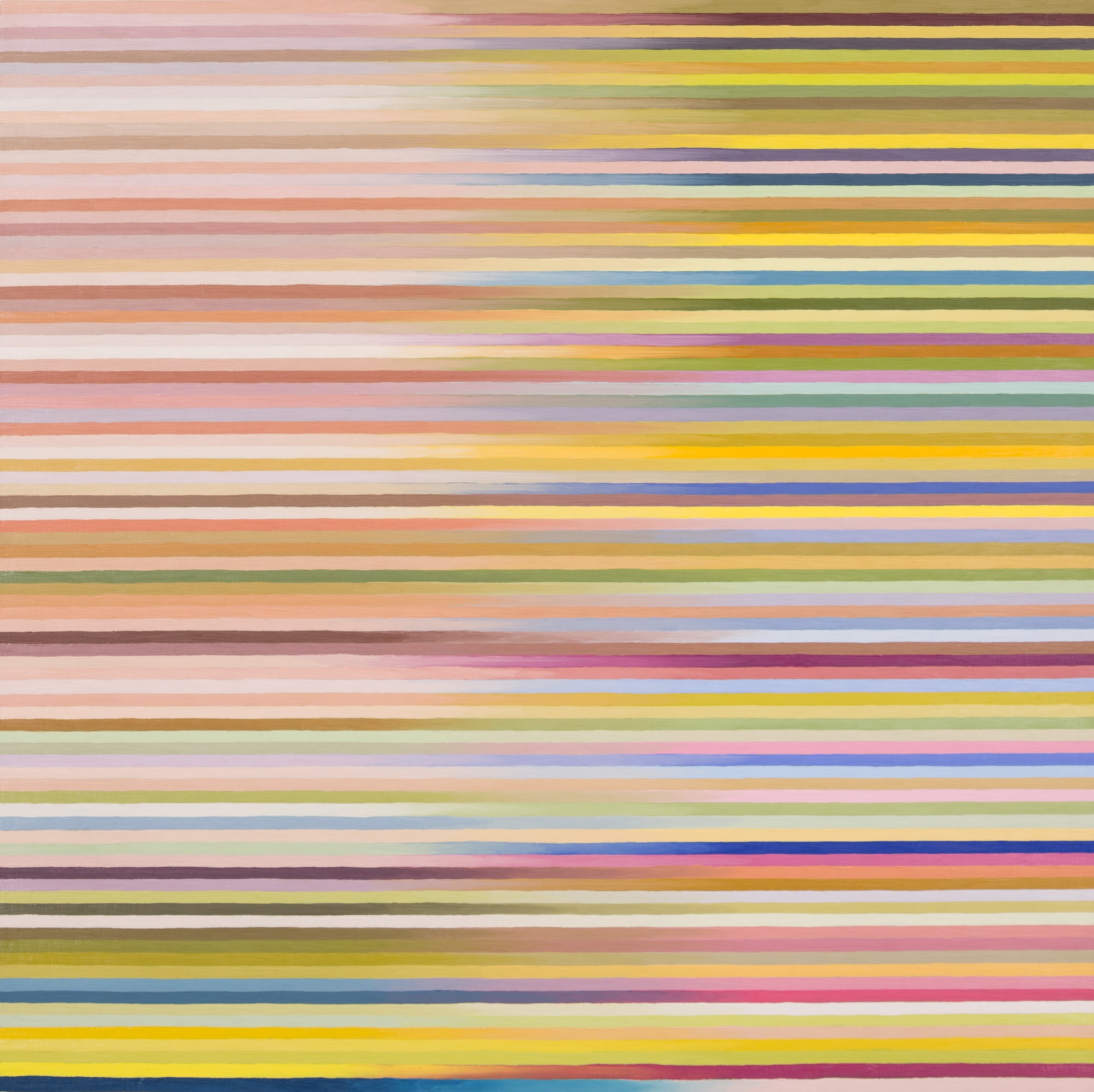 The system I devised to describe the restoration process organizes the color palette of each field from the most prevalent colors on the top of the paintings to least prevalent colors on the bottom. The left side of each of the paintings refers to the colors of the rye grass field; the right represents the existing wetland prairie. I visited the fields several times each season to track the progress of the seasons and the restoration.