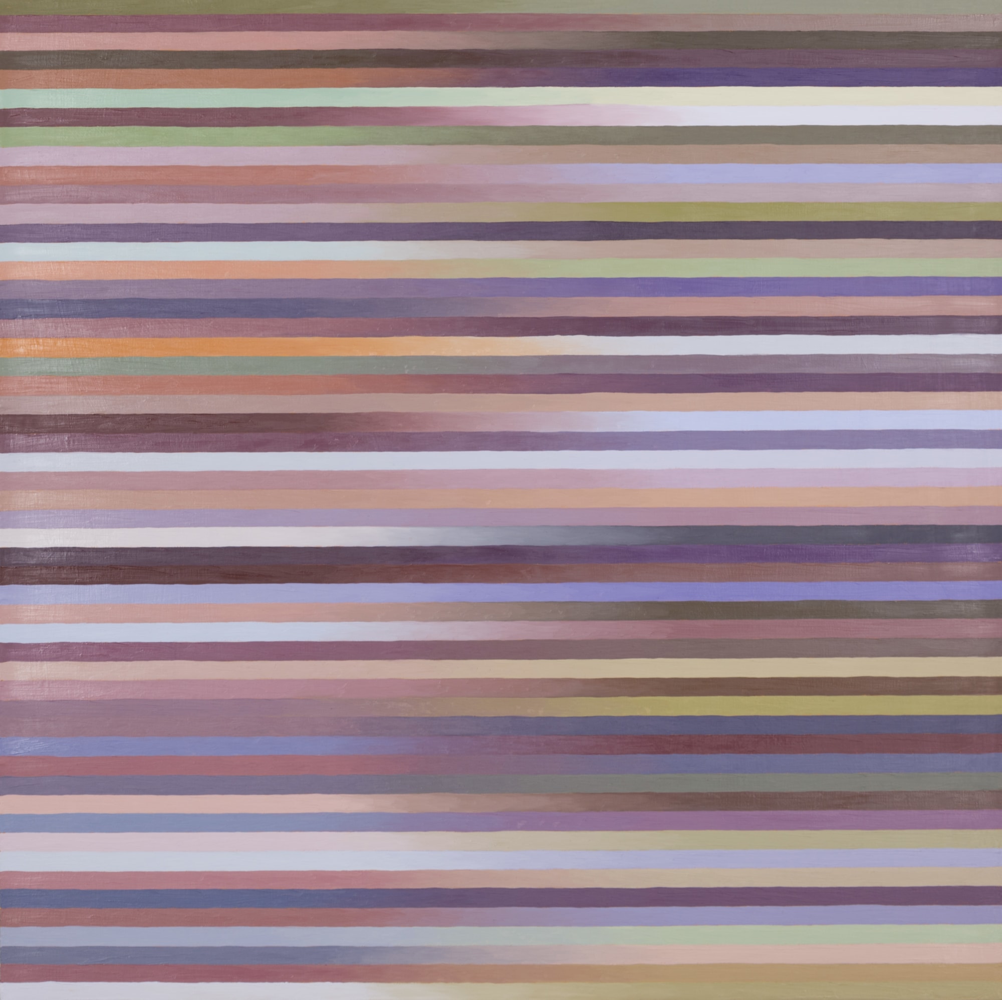 The system I devised to describe the restoration process organizes the color palette of each field from the most prevalent colors on the top of the paintings to least prevalent colors on the bottom. The left side of each of the paintings refers to the colors of the rye grass field; the right represents the existing wetland prairie. I visited the fields several times each season to track the progress of the seasons and the restoration.