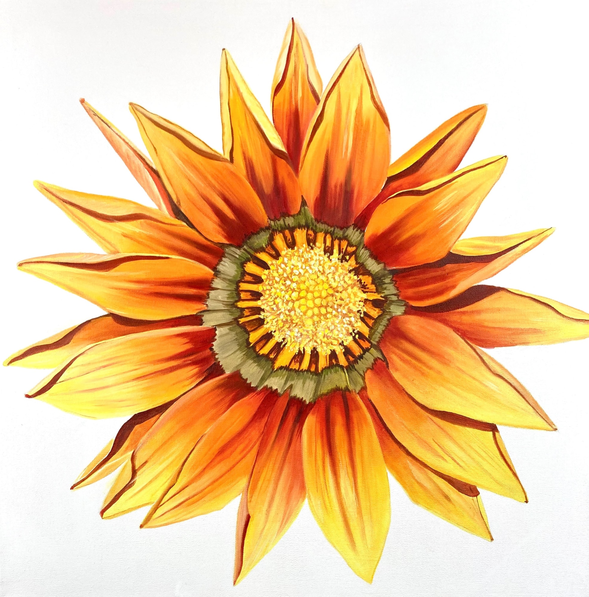This is an Gazania flower! This is another of my Flower Power series to showcase the blossoms of flowers on a plain white background. Providing a refreshing joyful feel of nature. I came upon this orange flower growing in a pot. It was so intricate! Just opening up!